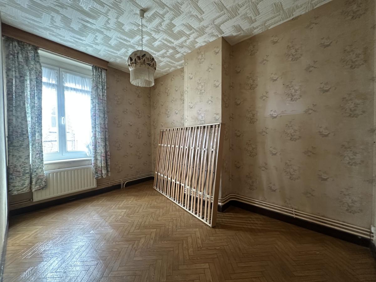 Dans le centre-ville de La Bassée, maison des années 1930 d'une surface de 110 m² habitable avec jardin et garage. La maison comprend un hall d'entrée, un salon/séjour de 32 m² avec possibilité de mettre un insert pour cheminée feux de bois, une cuisine meublée, une salle de bains et un WC. A l'étage 2 chambres + bureau ou dressing et au 2nd étage un grenier aménageable. La maison dispose également d'une cave, un jardin avec une petite dépendance et un garage 1 véhicule. Travaux de rénovation à prévoir. Elle est équipée d'un chauffage central au gaz et de fenêtres en PVC double vitrage avec volets roulants.