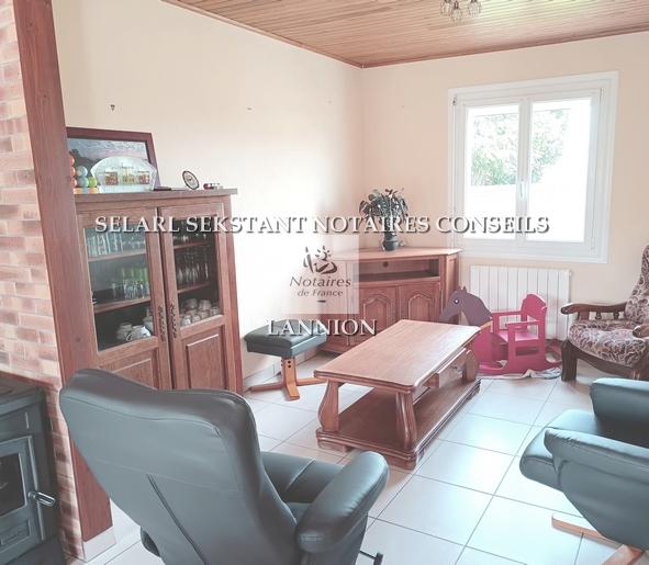 Maison d'habitation située à Ploubezre (22300), comprenant trois chambres dont une en rez-de-chausse, séjour salon, cuisine aménagée ouverte. Deux garages, terrain de plus de 3000 m² en zone constructible.