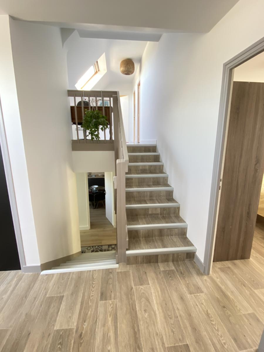 Au rez-de-chaussée : une cuisine aménagée et équipée, ainsi qu’une agréable pièce de vie ouverte sur une terrasse et un jardin arboré.