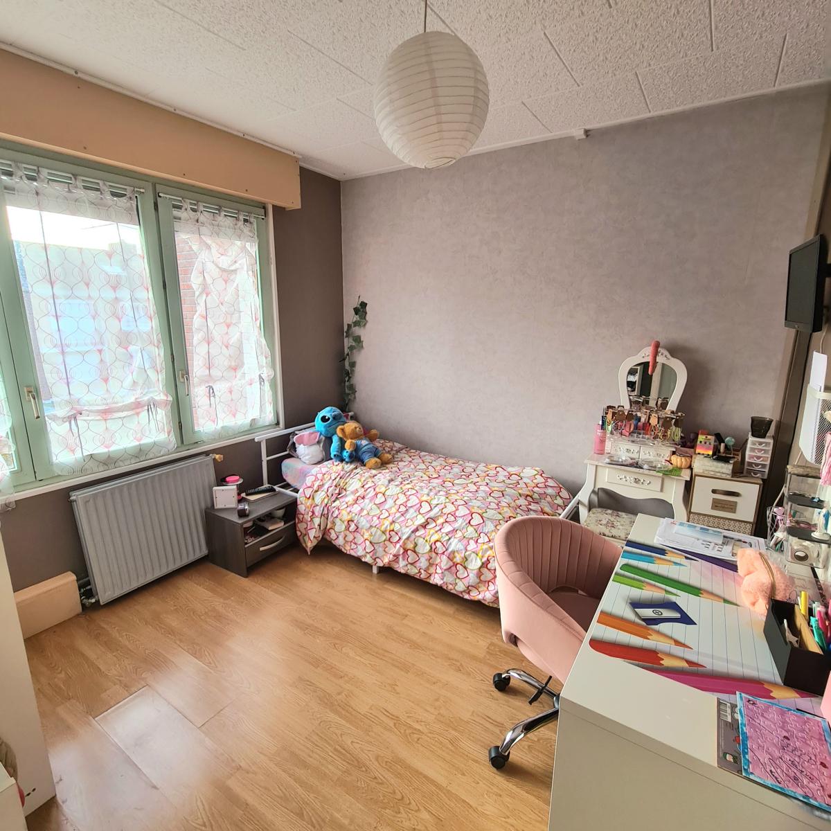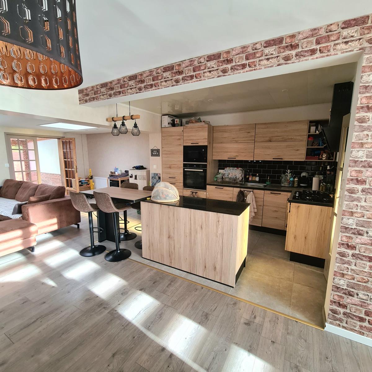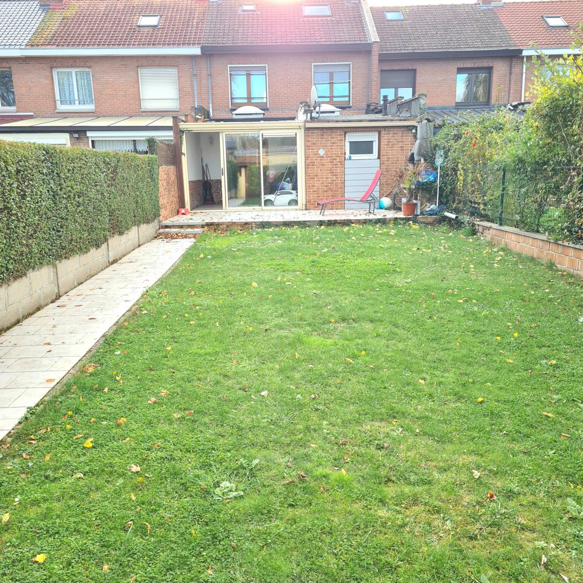 QUESNOY SUR DEULE Maison rénovée avec des beaux volumes avec un jardin de 200m². Elle dispose au rez-de-chaussée d'une entrée, un séjour-salon de 46 m² avec une cheminée à insert et une cuisine équipée, une véranda, une buanderie, un wc et une salle de douche. A l'étage : 3 chambres et une salle de bains avec wc. Combles aménagés en une chambre. Un jardin avec deux terrasses et une dépendance où il est possible d'y stationner des deux roues. Une cave saine. AU CALME ET PROCHE TOUTES COMMODITES !