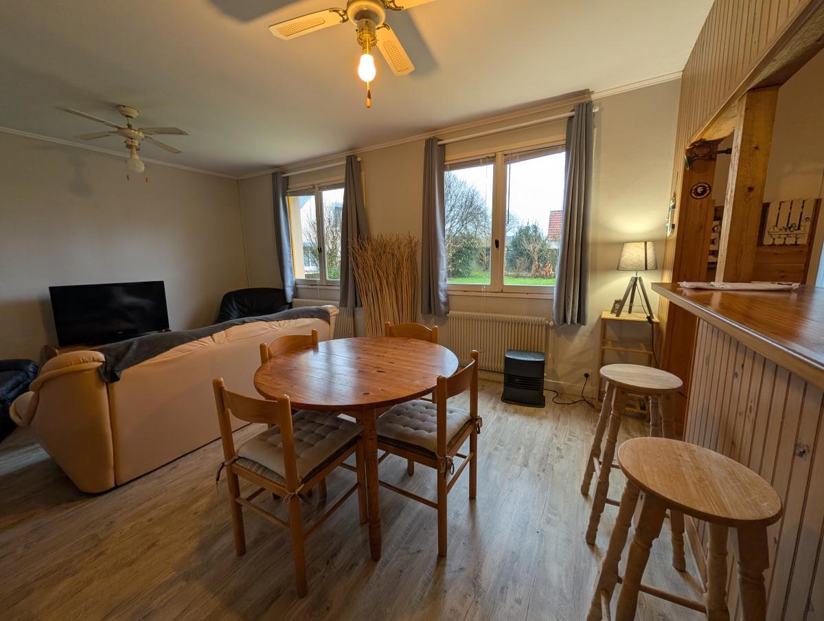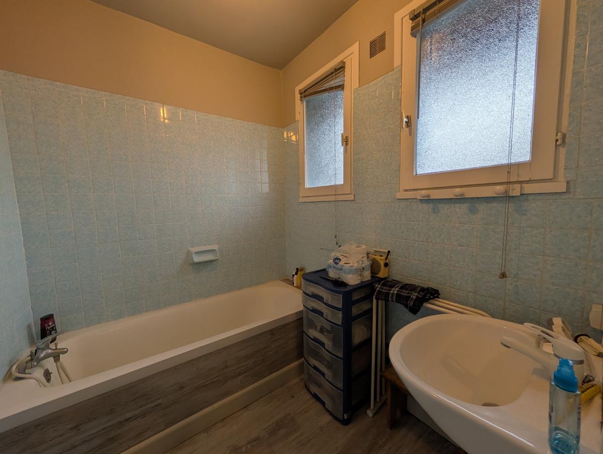 PLOUIGNEAU, dans un quartier calme, maison comprenant entrée, cuisine ouverte sur séjour, véranda donnant sur le jardin, chambre, salle de bains, wc. A l'étage : 3 chambres. Garage.Terrain 780 m². Travaux à prévoir.