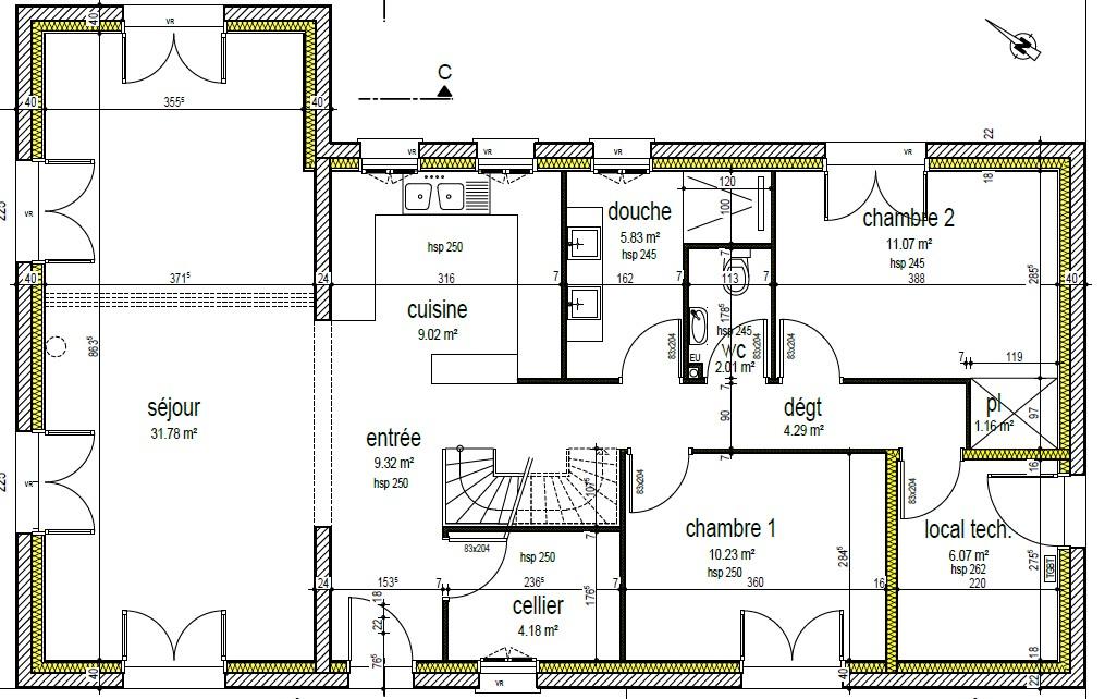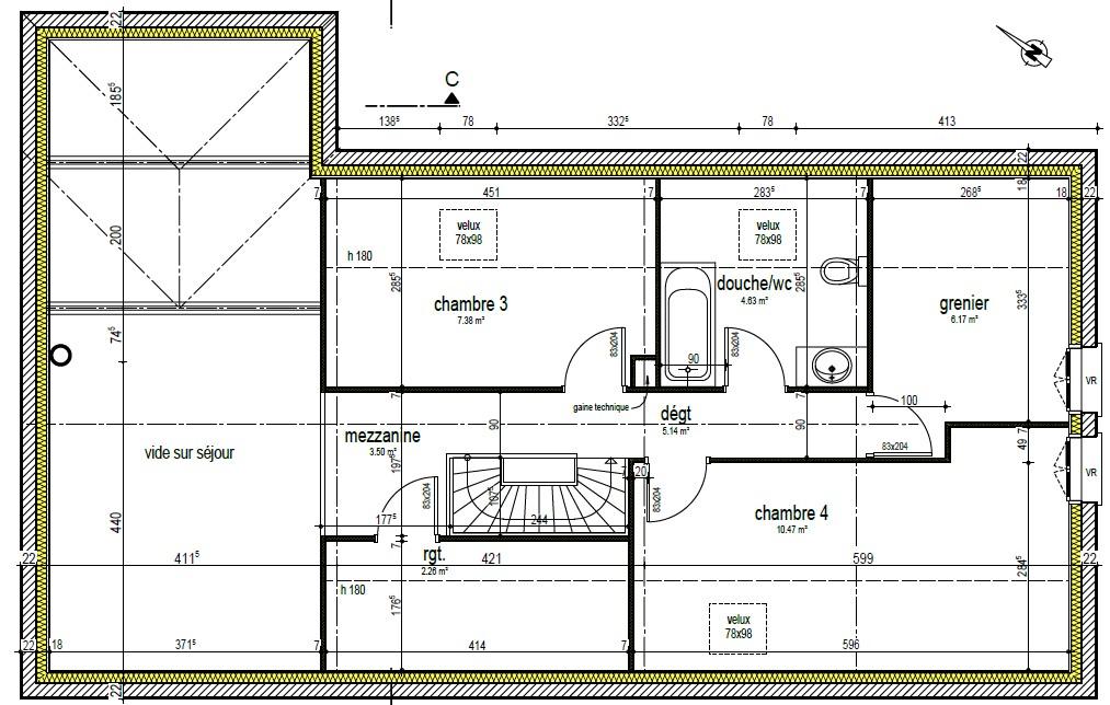 Maison T5 neuve d’environ 115m² habitable (135m² au sol) composée de :