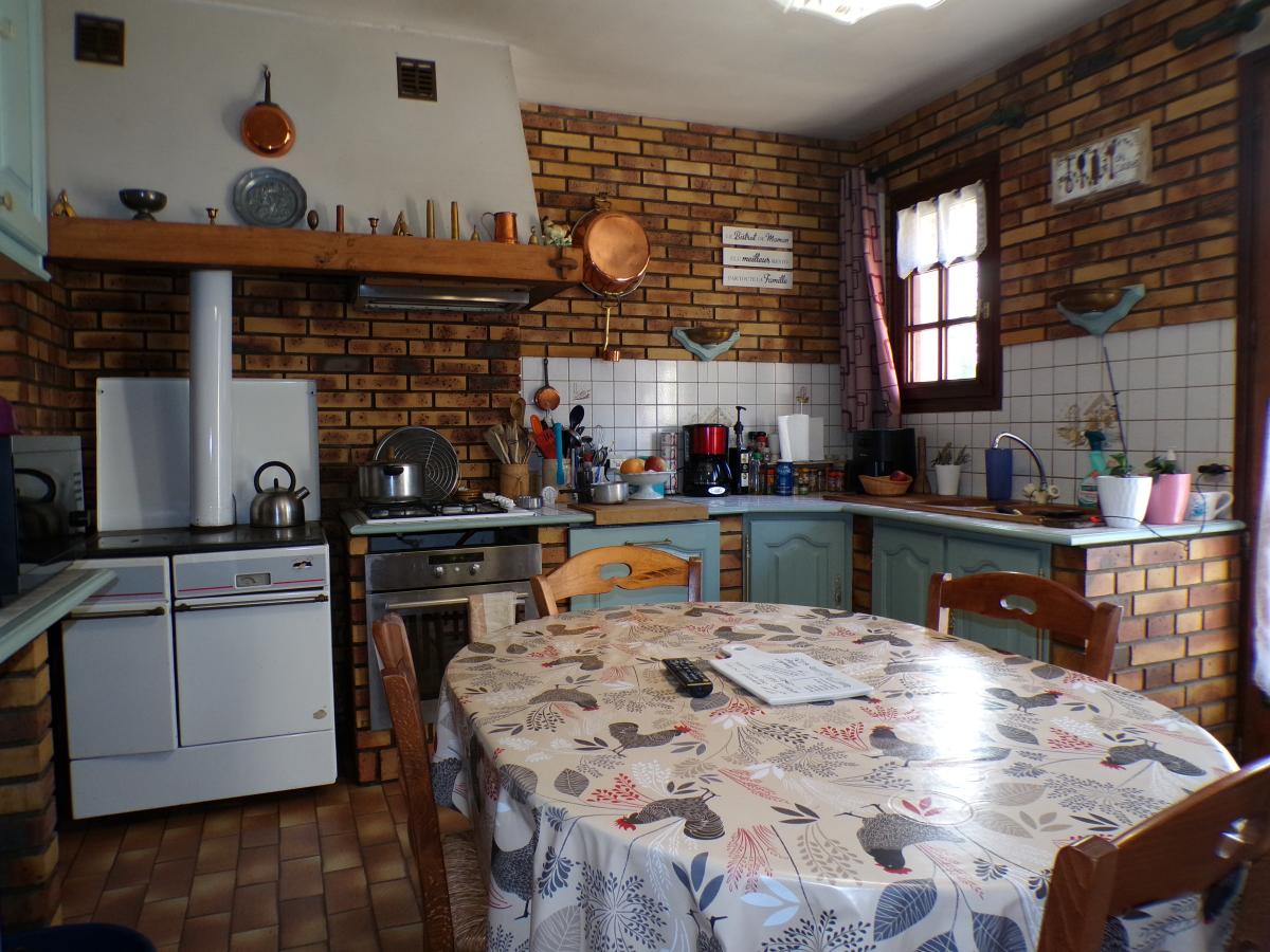 Au rez-de-chaussée : entrée, cuisine aménagée, séjour/salon, couloir desservant deux chambres, salle d'eau, wc ;