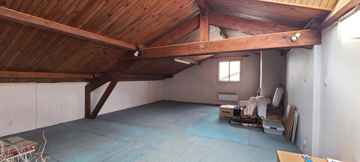Maison très bien entretenue à proximité immédiate d'un petit pôle commercial et des transports (lignes 27 et 102),. Cette maison édifiée sur terrain clos de 404m² vous séduira par sa vie de plain-pied. Elle dispose d'une terrasse exposée Ouest à l'abri des regards et d'un espace de stationnement pouvant accueillir une voiture. Entrée dans salon-séjour de 48m² avec une triple exposition, cuisine aménagée. couloir desservant deux chambres, salle d'eau et wc. Garage. À l'étage, une grande pièce aménageable, salle d'eau et grenier de rangement. Ce bien comprend également une dépendance de jardin. Les renseignements concernant les risques auxquels la maison est confrontée sont consultables sur le site de géorisques. www.georisques.gouv.fr