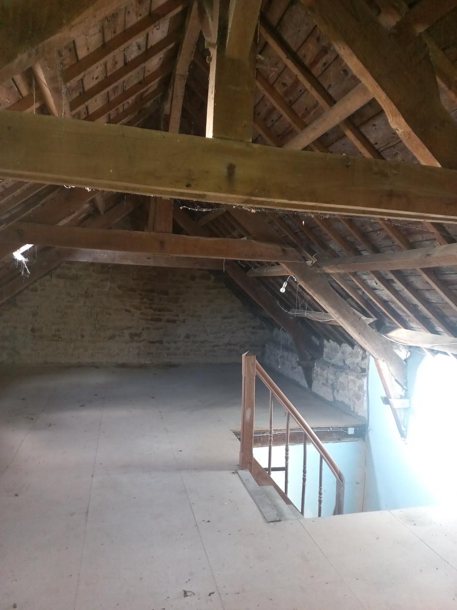 Ancien corps de ferme offrant un beau potentiel d'aménagement et de développement. La propriété comprend une maison d'habitation à rénover composée d'une cave ; au rez-de-chaussée : entrée, salon, salle à manger, cuisine, bureau, salle d'eau, wc ; à l'étage : deux chambres, un bureau ; grenier au-dessus. Une ancienne étable en pierres à rénover. Une ancienne salle de traite sous fibro. Un hangar fermé d'environ 330 m². Un second hangar ouvert sous tôles d'environ 290 m². Une fosse. Terrain attenant.