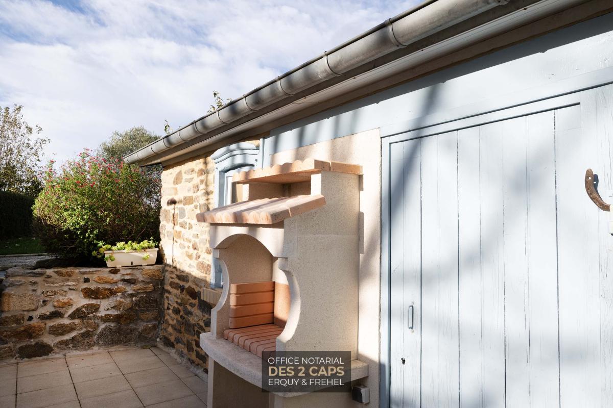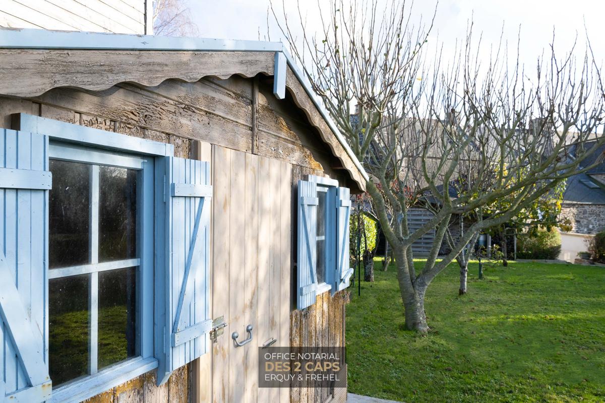 Maison meublée plein centre de Matignon composée au rez-de-chaussée d'une entrée desservant un salon avec cheminée, une cuisine équipée, des placards et des WC. Au premier étage, deux chambres et une salle de bains avec des WC, un bureau. Au deuxième étage, une chambre. Une chaufferie/pièce de rangement attenante et un cabanon dans un jardin clos et arboré.