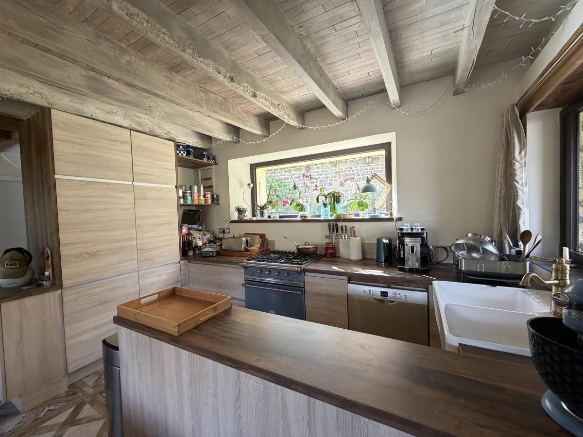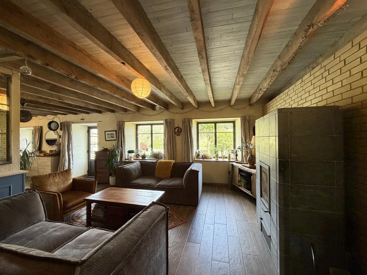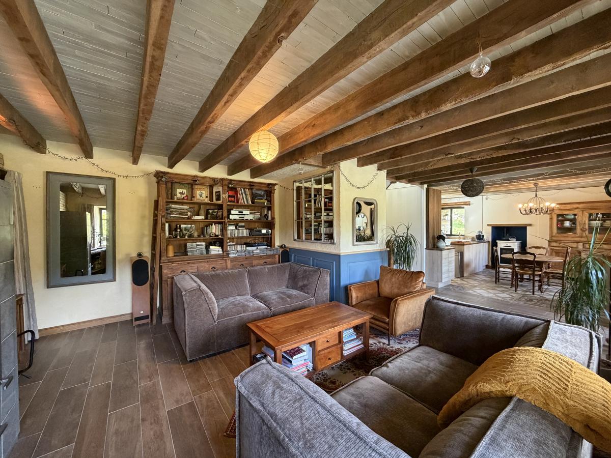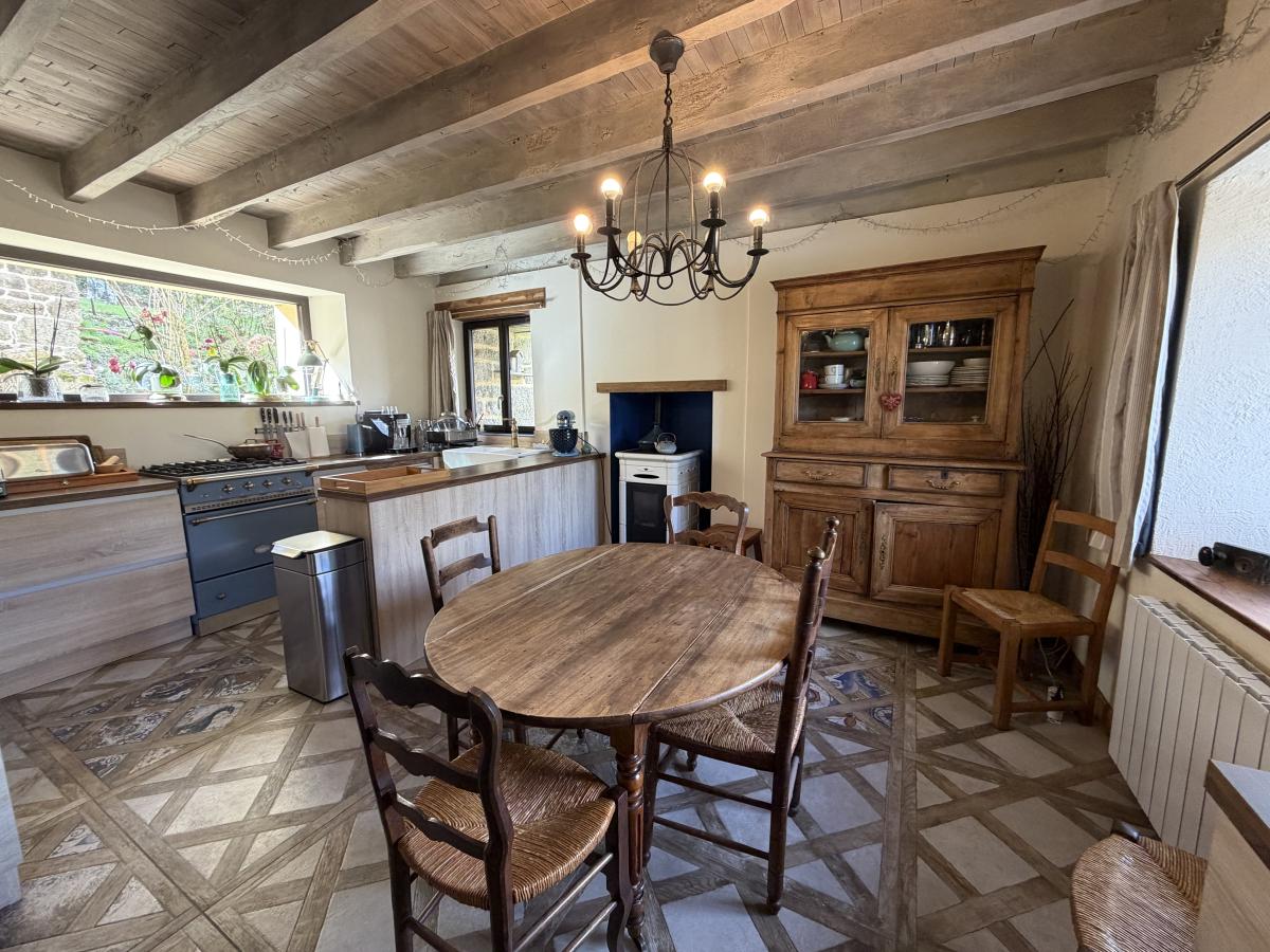 Dès l’entrée, vous découvrirez un salon chaleureux avec poêle de masse, idéal pour des moments conviviaux, une cuisine ouverte sur la salle à manger (poêle à pellets programmable).