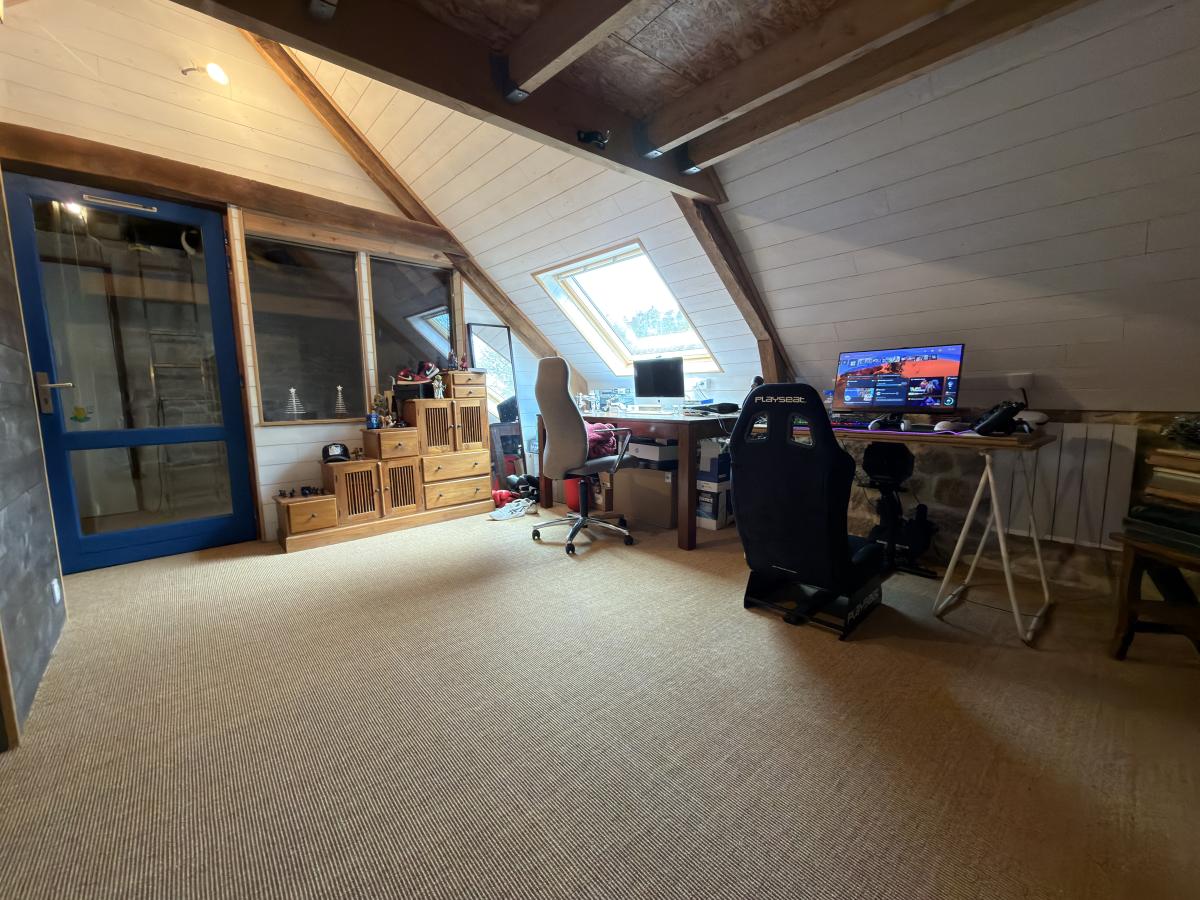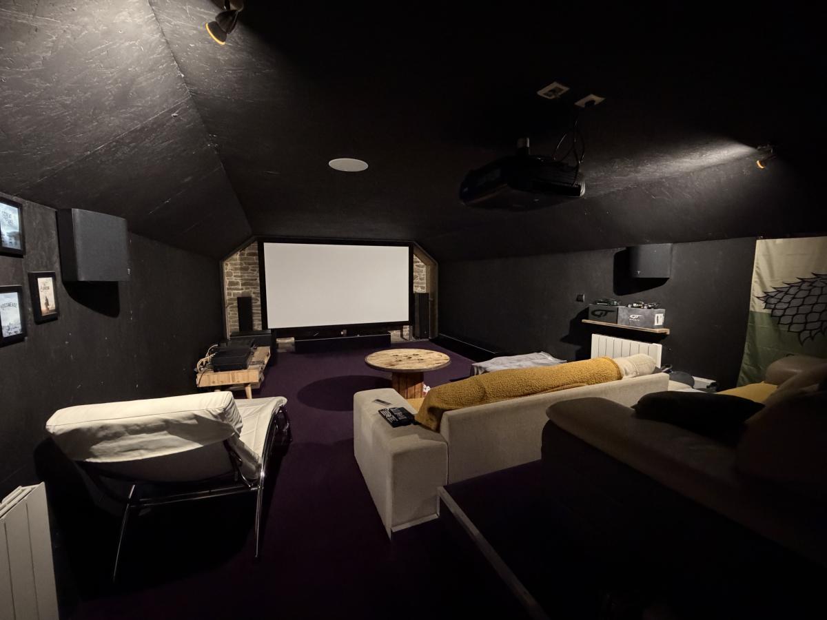 Au-dessus du garage, un espace totalement indépendant vous attend avec une pièce dédiée au couchage et sa salle d'eau-WC attenante, et une salle de projection, idéale pour des soirées cinéma !