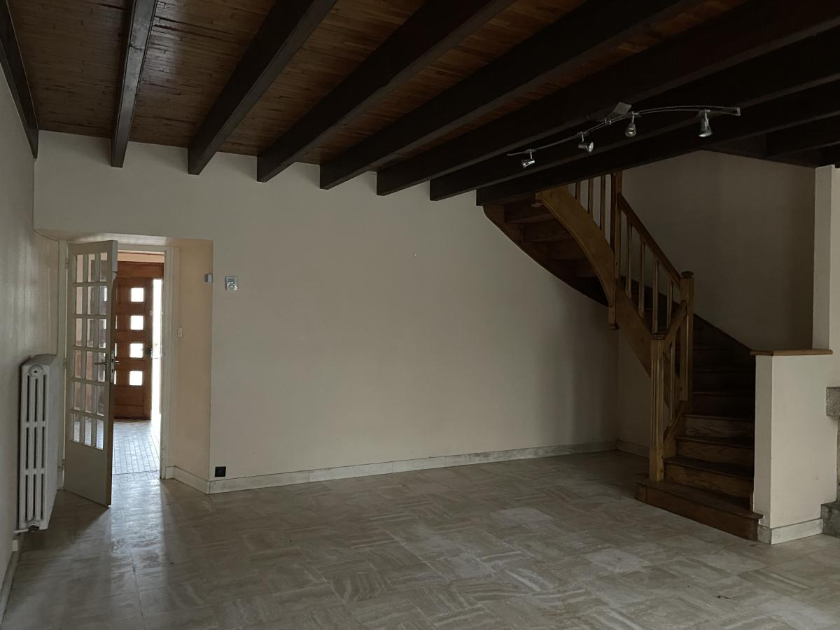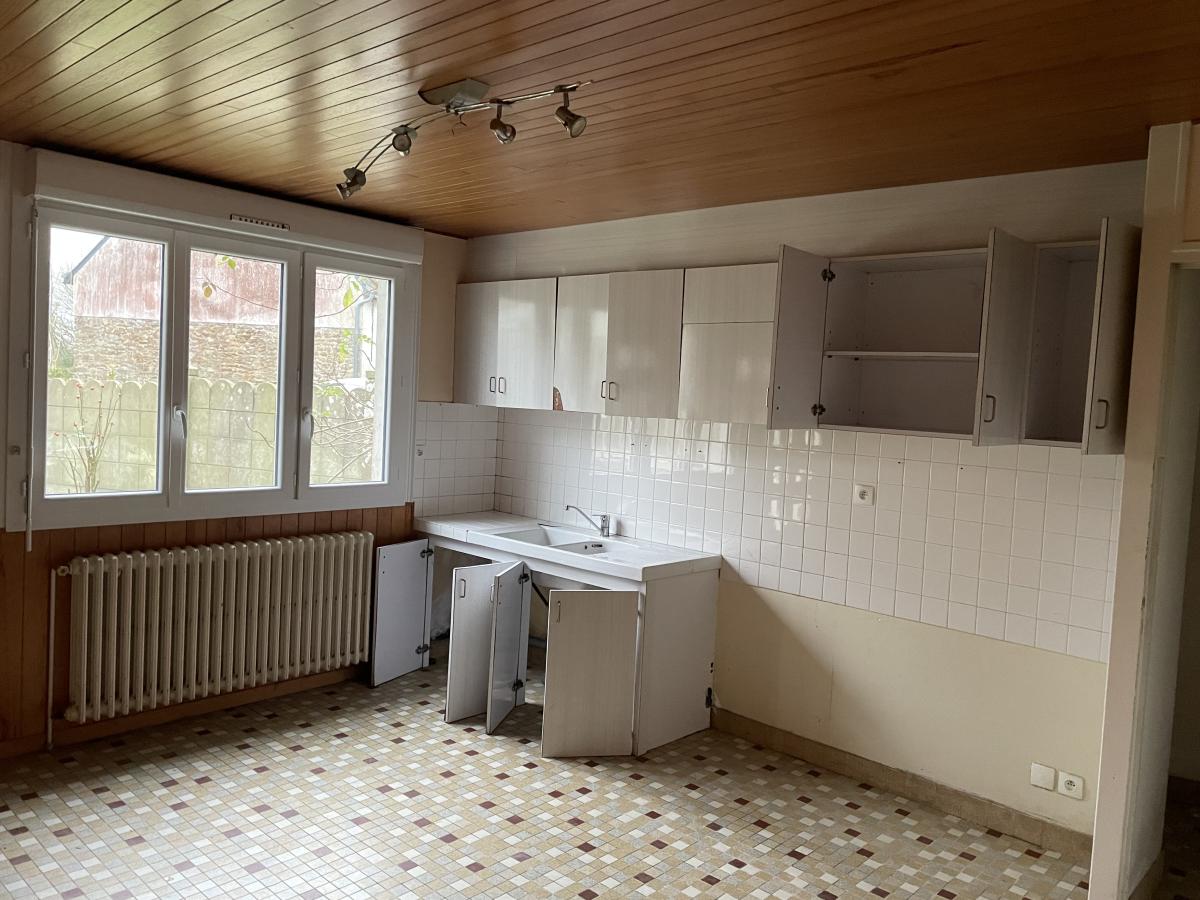 Belle maison en pierres, mitoyenne, au bourg, sur sur 256 m2 de terrain, comprenant en rez de chaussée une grande cuisine à l'arrière, salle et salon cheminée en façade, une chambre, wc/lavabo, ancienne véranda ; au premier étage, palier et errasse sur jardin, salle de bains et wc, deux belles chambres et petite pièce en enfilade, grenier au-dessus. Garage.