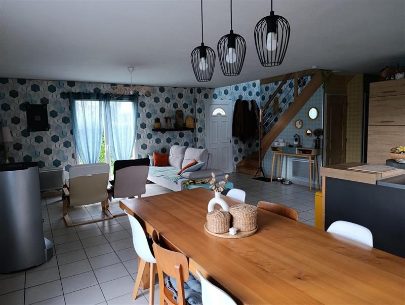 - Au Rez-de-jardin : cuisine aménagée et équipée ouverte sur salle de séjour salon avec poêle à granulés, salle d'eau, WC, trois chambres et dressing