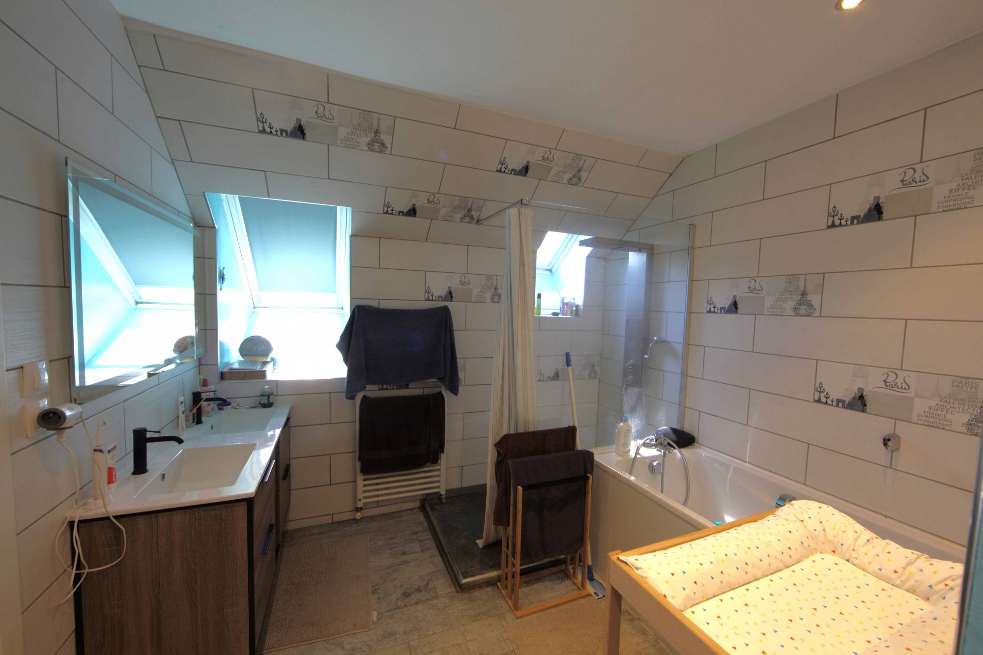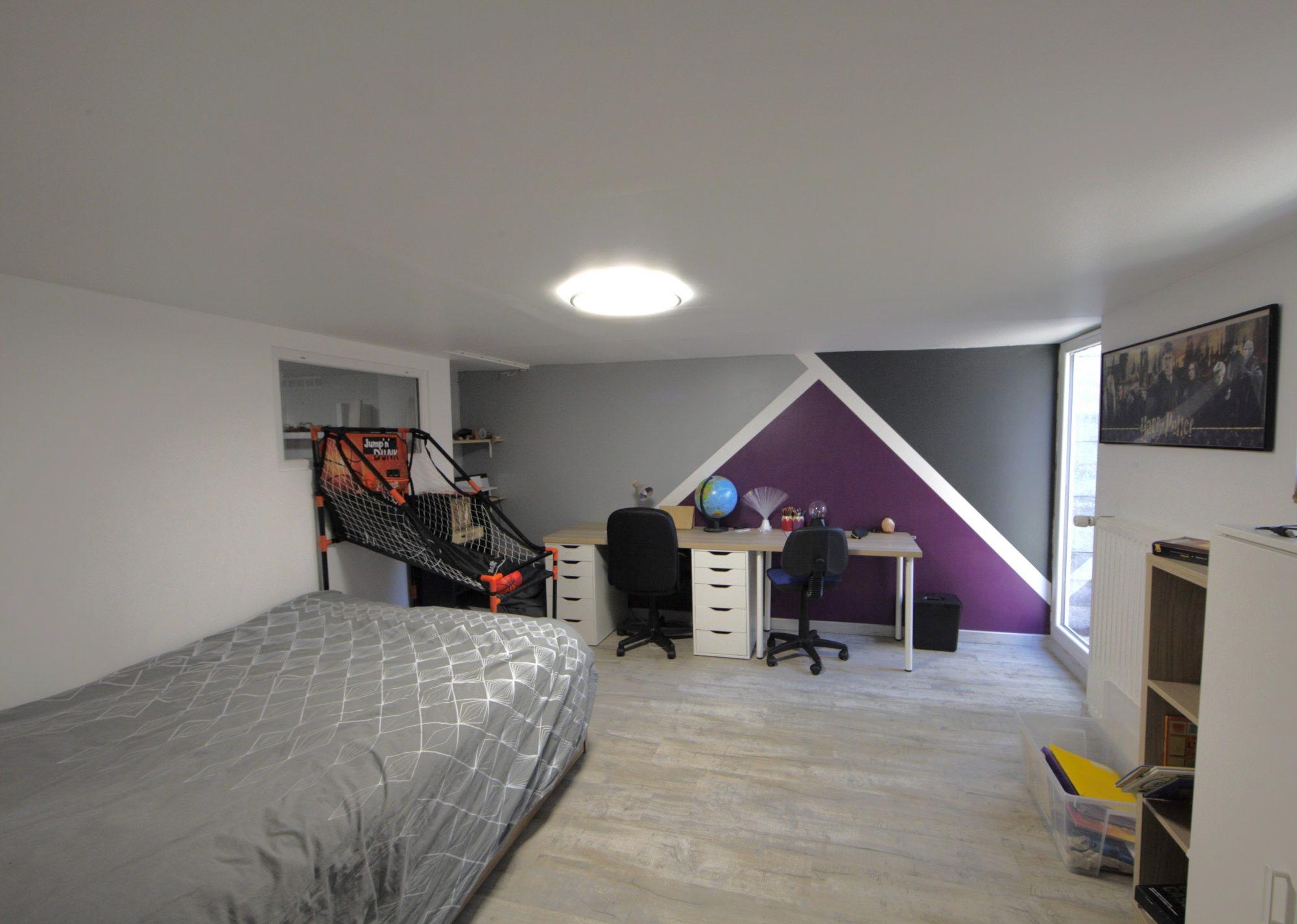 Au sous-sol: une surface totale d'environ 58m² entièrement carrelée, composée d'une buanderie-chaufferie-atelier, un bureau et une chambre de 12m² avec fenêtre et porte vitrée.