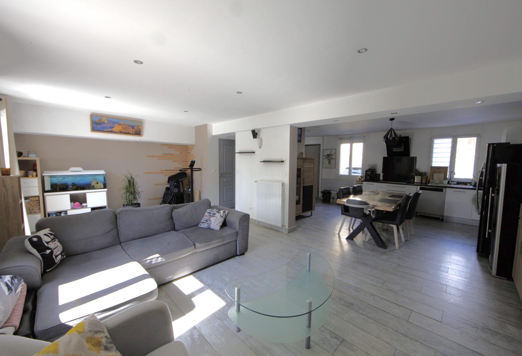 Maison mitoyenne d'une surface habitable totale de 118m² sur deux niveaux, plus un sous-sol total. Le tout sur un terrain de 269m² clôturé.