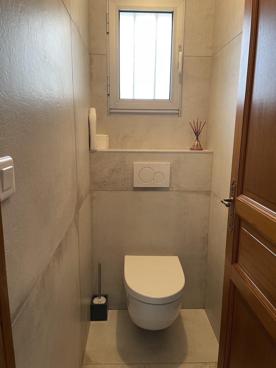 Le petit plus : un garage carrelé offrant un espace de rangement supplémentaire