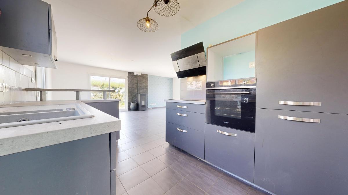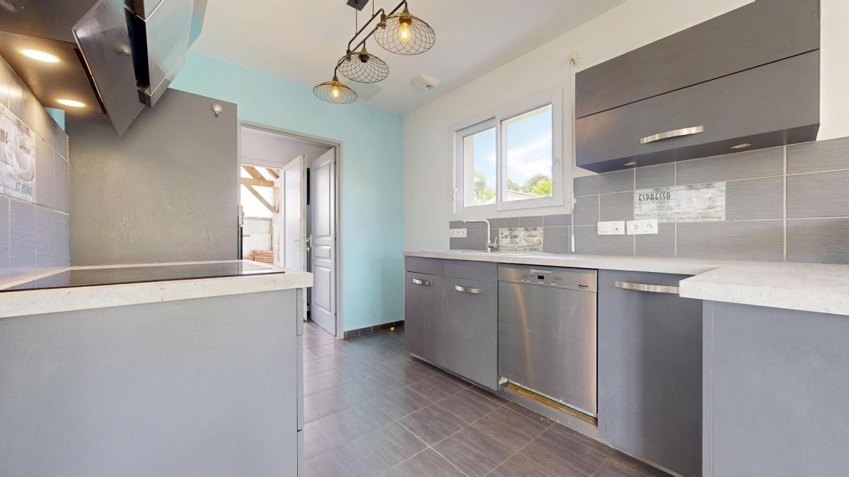 Une cuisine équipée ouverte sur un séjour lumineux, idéal pour la vie quotidienne.