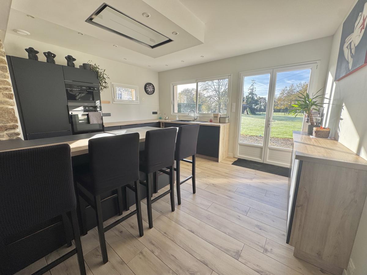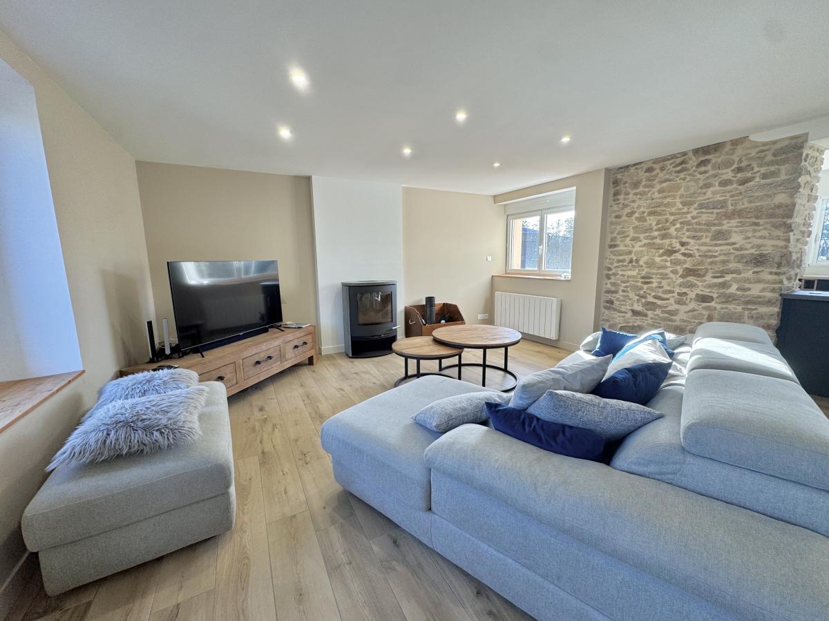 Dès l’entrée, vous serez séduit par le salon-séjour chaleureux, équipé d’un poêle à bois. La cuisine, refaite, aménagée et équipée, s’ouvre sur la pièce principale.