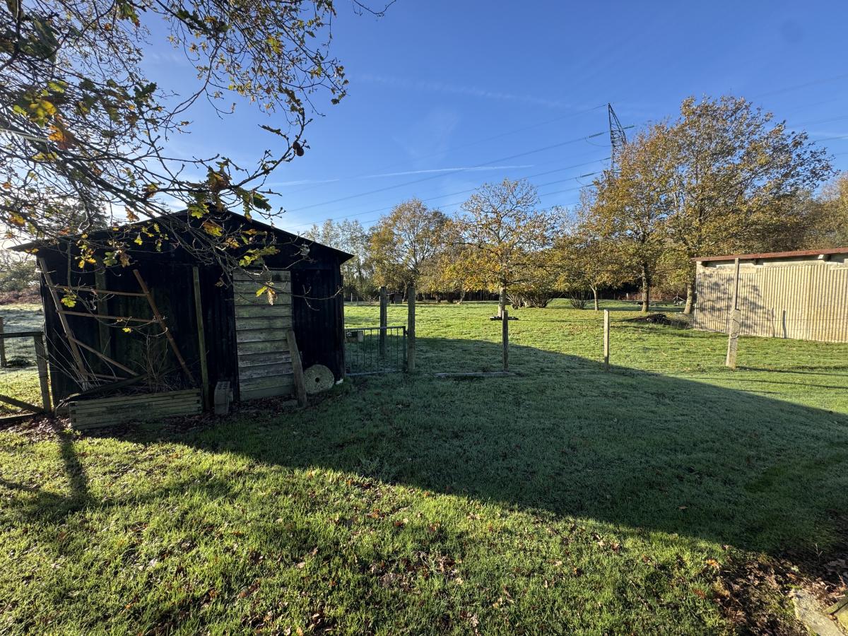 À l’extérieur, le potentiel continue : on retrouve plusieurs dépendances — un hangar, un abri/serre et une bergerie.