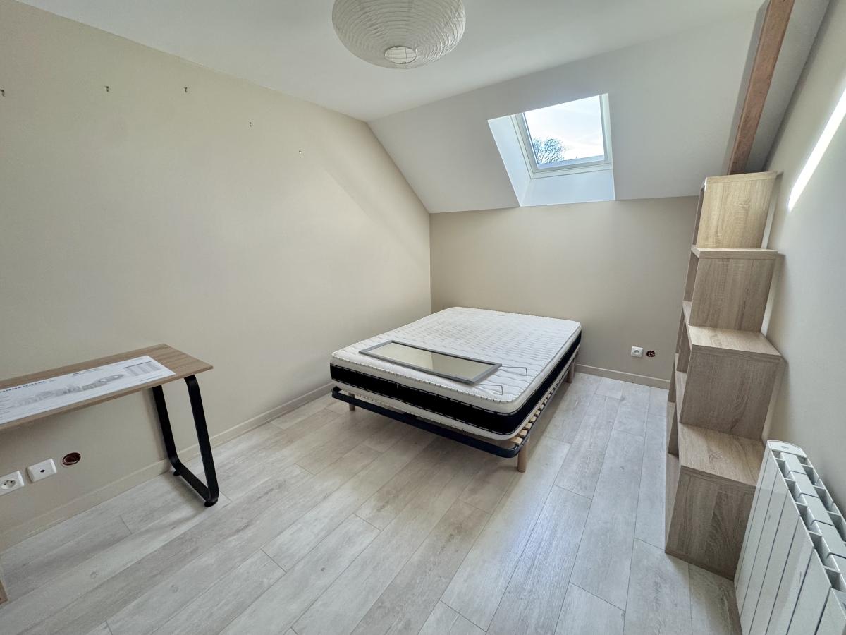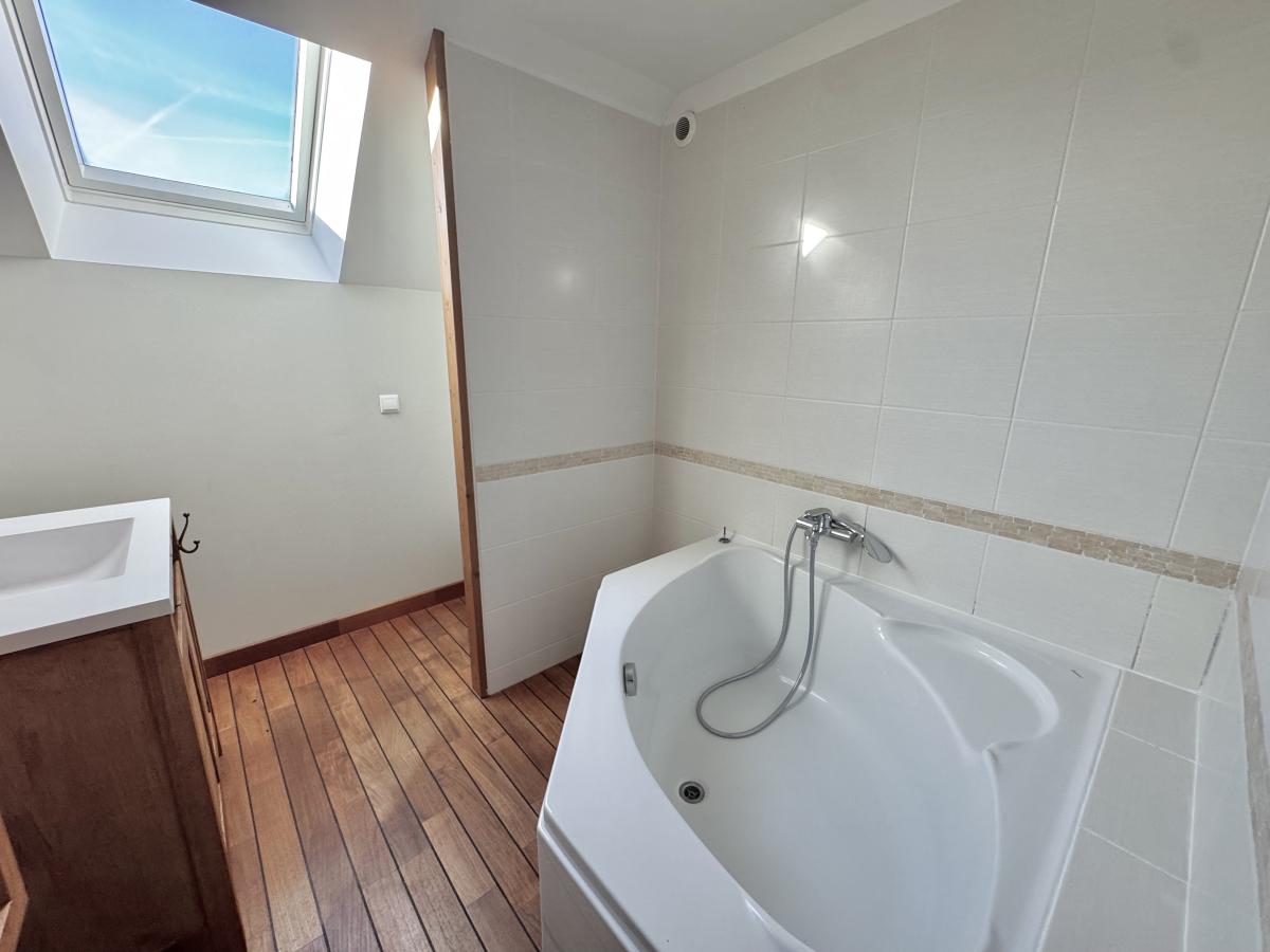 À l’étage, un dégagement dessert une salle de bains avec WC suspendu, deux chambres et un grenier d’environ 12 m².