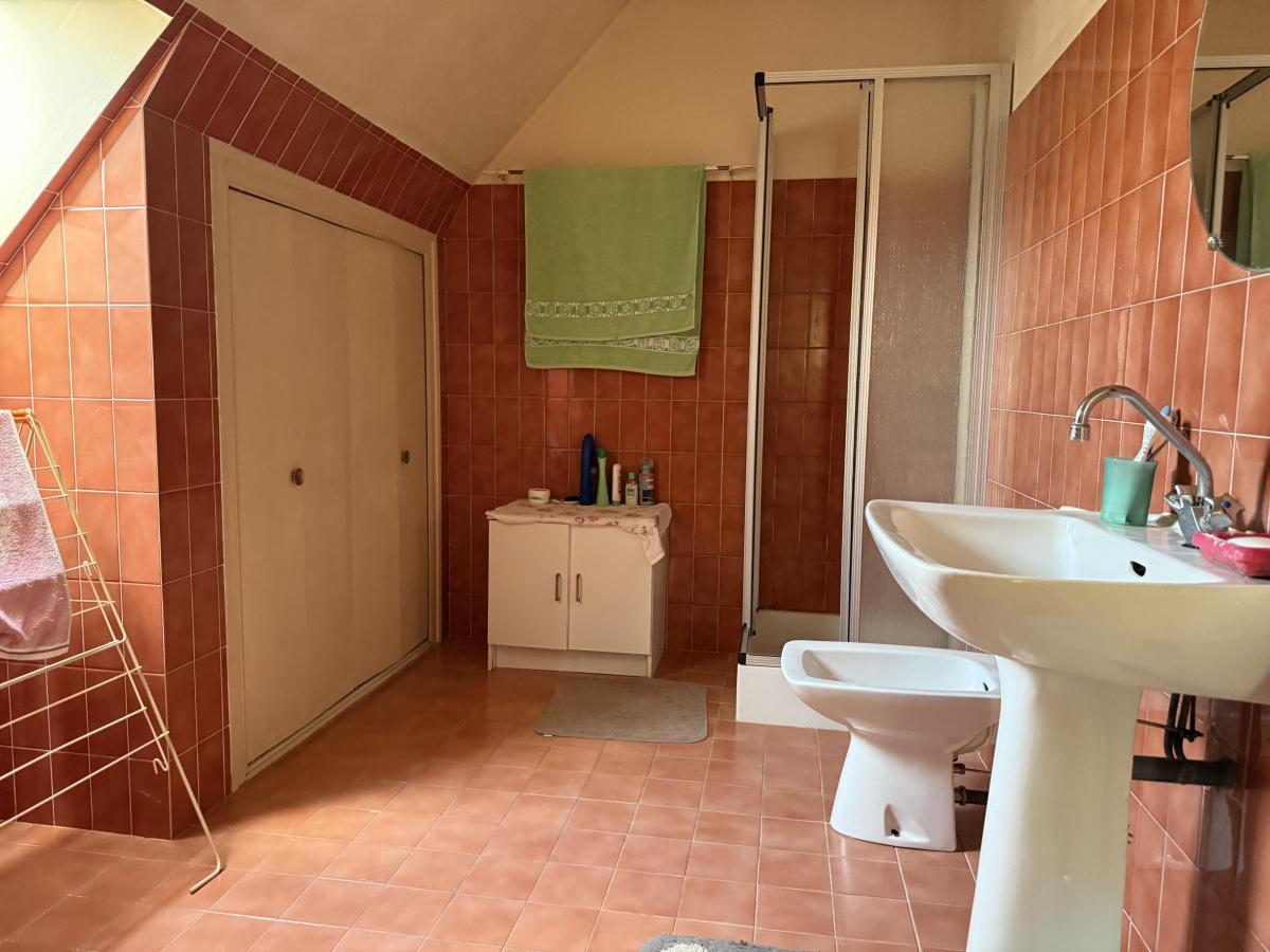 - À l'étage : palier avec placards, deux chambres avec placards, bureau, salle de douches, WC.