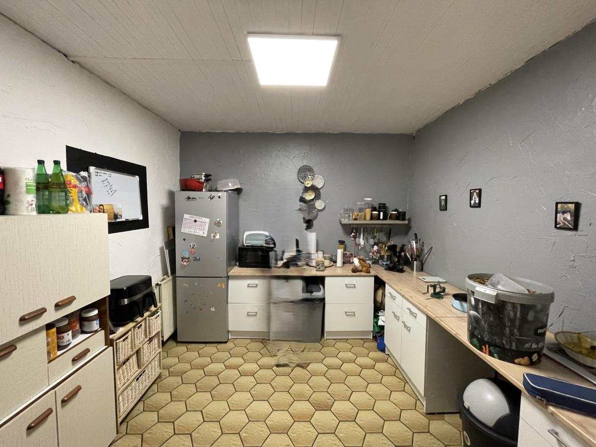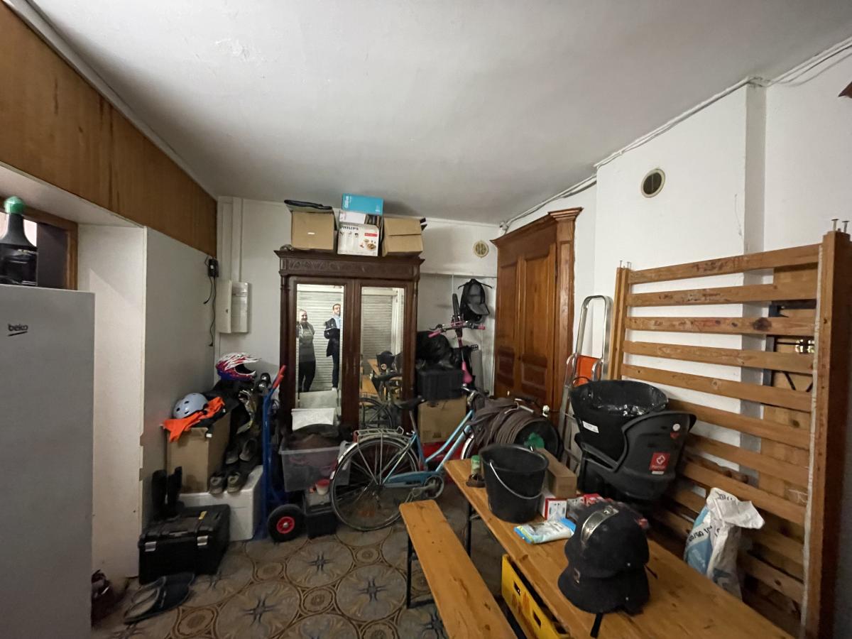 La cave présente des traces d'humidité, nécessitant des travaux d'assainissement.
