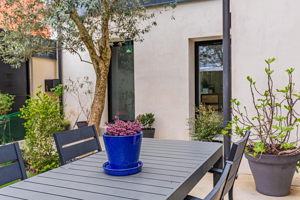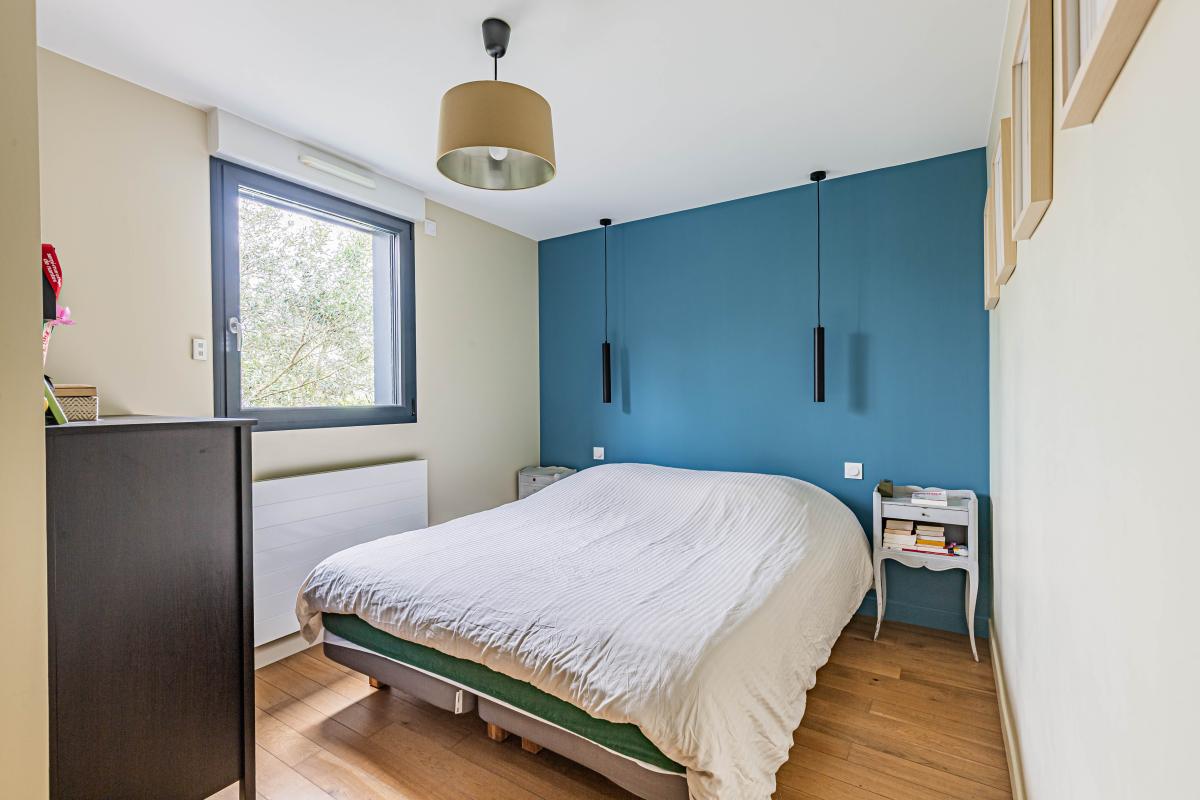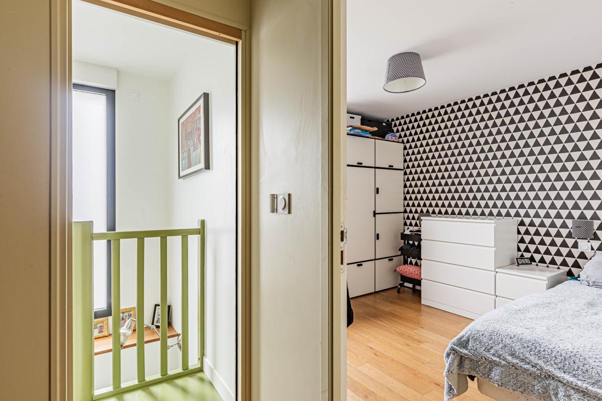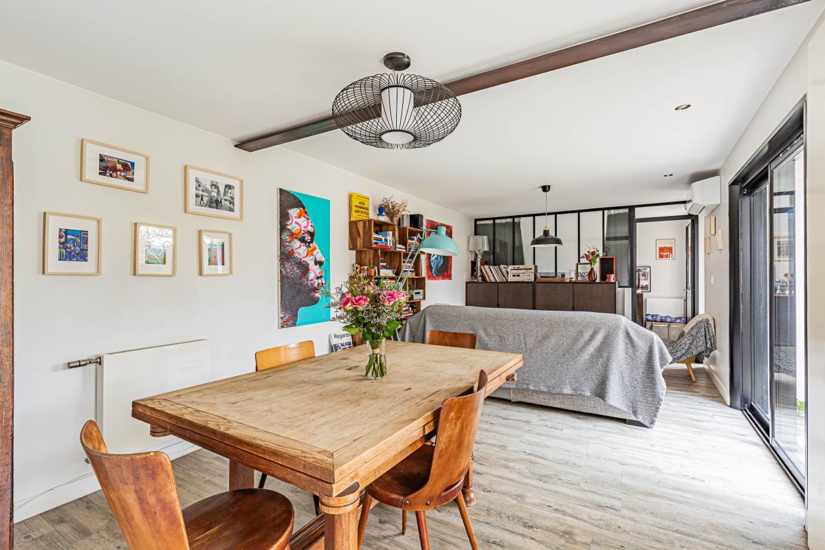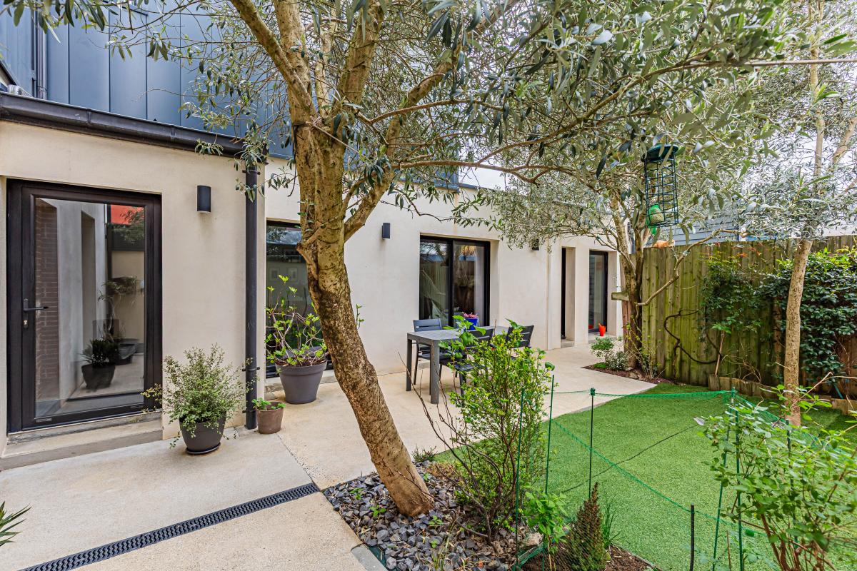 Au rez-de-chaussée, vous retrouverez un hall d'entrée vous permettant d'accéder au salon/séjour donnant directement depuis sa baie à galandage sur un agréable jardin, exposé plein sud, arboré et sans vis à vis. Dans l'alignement du salon/séjour vous disposerez d'un espace bureau d'environ 8.69 m² donnant également accès depuis une porte fenêtre au jardin.