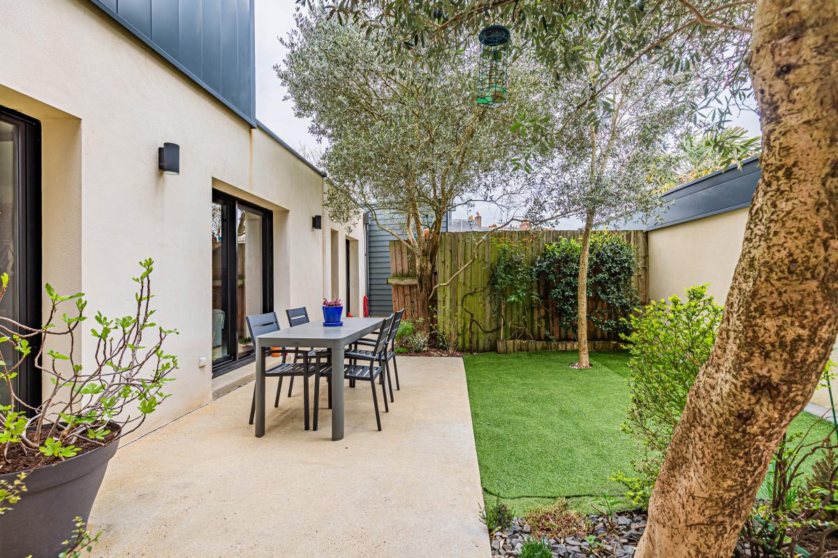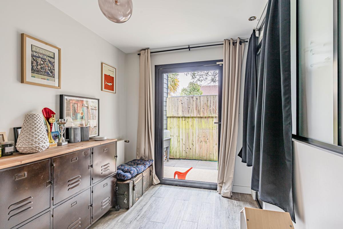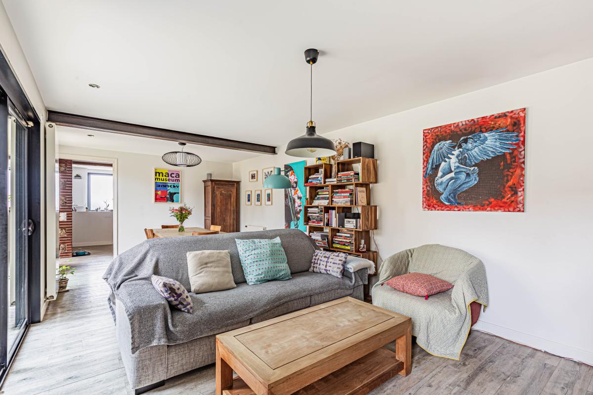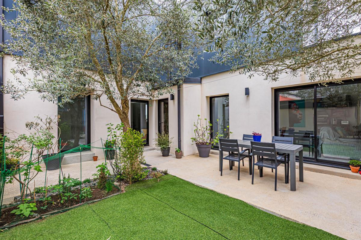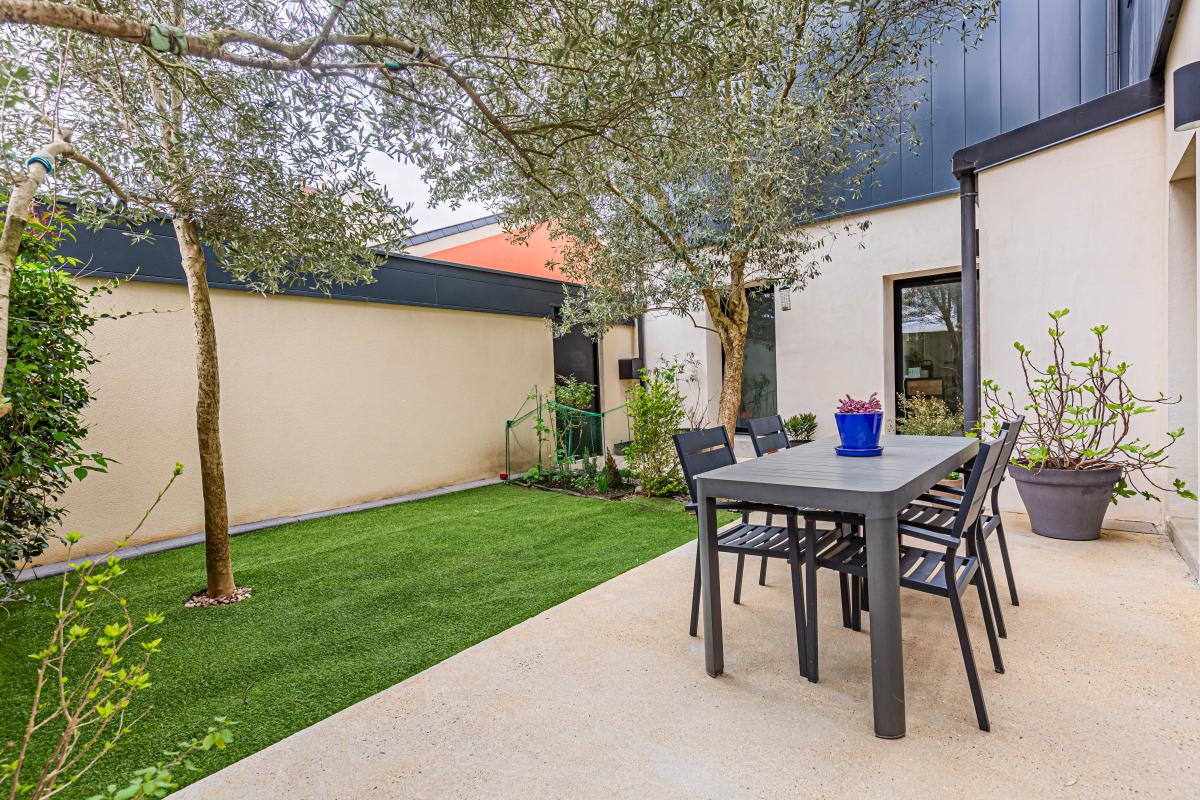 Au rez-de-chaussée, vous retrouverez un hall d'entrée vous permettant d'accéder au salon/séjour donnant directement depuis sa baie à galandage sur un agréable jardin, exposé plein sud, arboré et sans vis à vis. Dans l'alignement du salon/séjour vous disposerez d'un espace bureau d'environ 8.69 m² donnant également accès depuis une porte fenêtre au jardin.