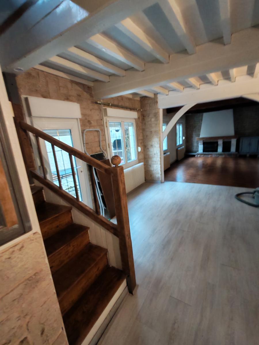 VENTE MAISON NAOURS entre AMIENS et DOULLENS, donnant sur cour avec garage et dépendances à l'avant, et sur jardin à l'arrière avec terrasse couverte, et cuisine d'été. La maison comprend , entrée cuisine séjour double avec CFB, couloir SDB et WC au RDC, et à l'Etage palier Bureau trois chambres et dressing. Assainissement Individuel Chauffage central au Fioul.