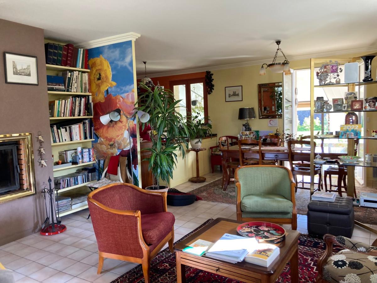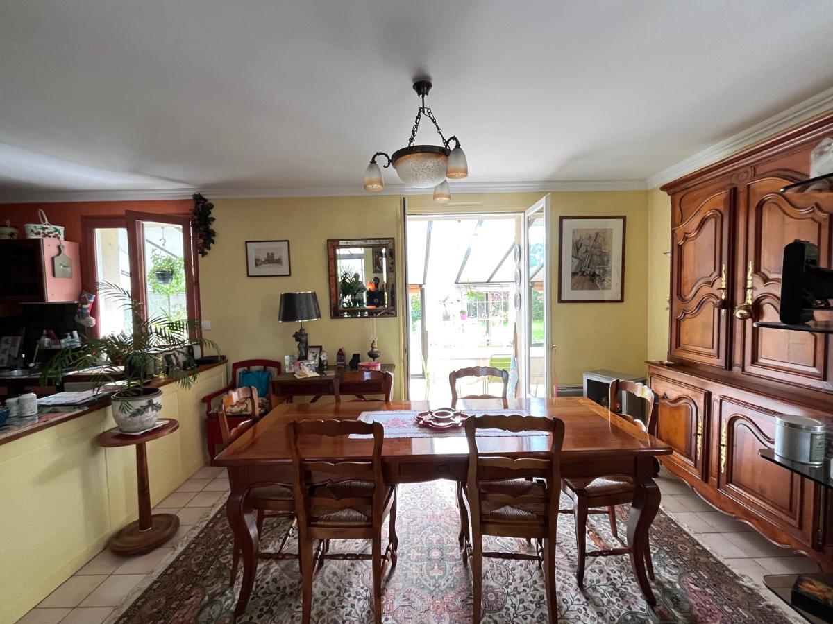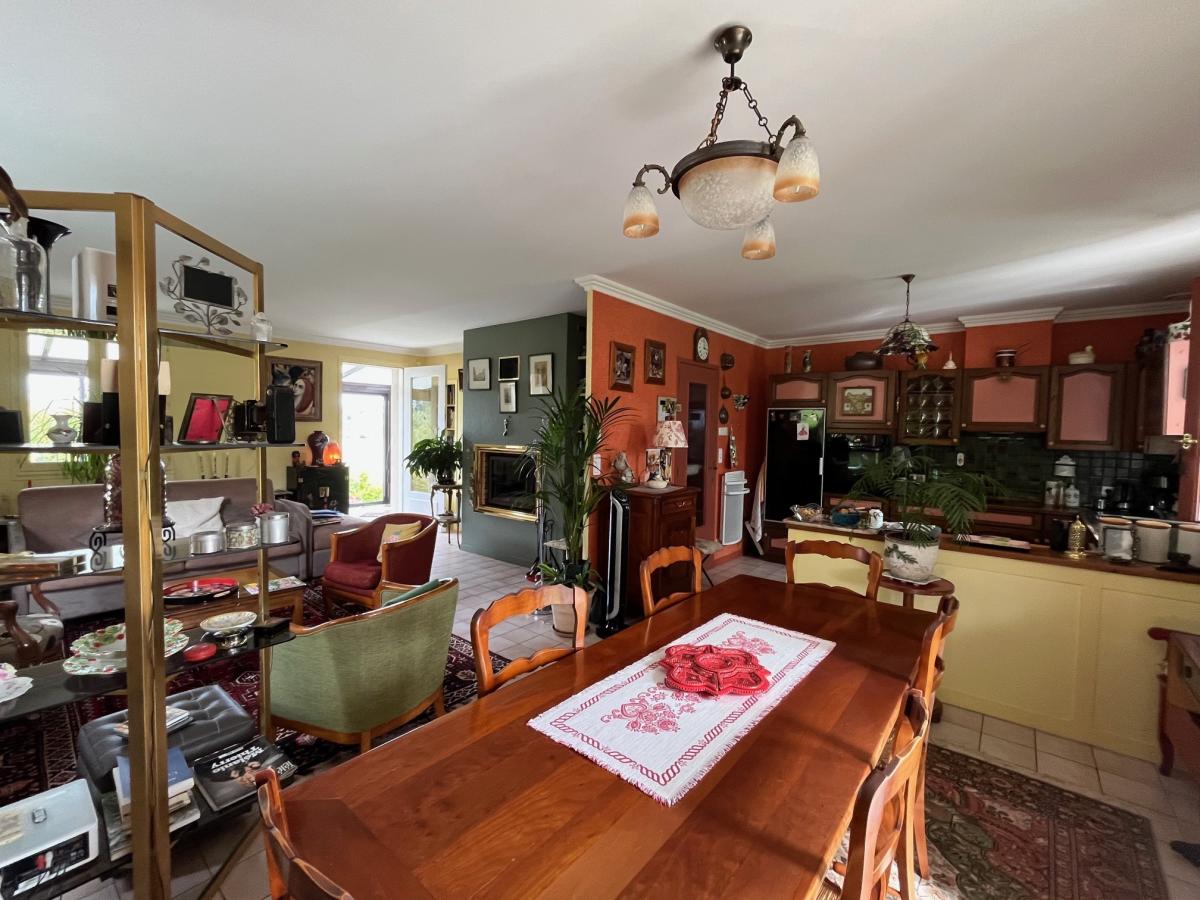 Il comprend : une entrée par véranda, une cuisine aménagée ouverte sur la salle à manger, un salon avec insert, une véranda d'environ 20 m², un couloir dessert 2 chambres avec salles d'eau privatives, un bureau avec dressing, wc.