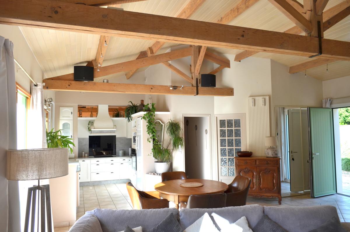 CUGAND CENTRE - Dans un environnement très privilégié, en impasse à l'abri des regards, Très belle maison lumineuse comprenant trois grandes chambres avec rangements, sanitaires, lingerie et salle de douches ainsi qu'une grande pièce de vie (environ 57 m²) très lumineuse ouverte sur une cuisine aménagée et équipée ainsi que sur une grande terrasse surplombant un très beau parc arboré et paysagé, dont une partie pourrait fait l'objet d'une nouvelle construction (division réalisable).