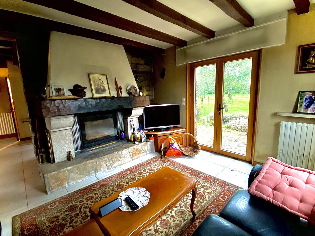 Située dans un cadre paisible et verdoyant, cette maison à la campagne vous offre une belle opportunité de profiter de la tranquillité tout en étant à proximité des commodités. D'une surface de 121 m², cette maison avec vie de plain-pied comprend un hall d'entrée, un salon séjour ,avec cheminée, une cuisine indépendante, une chambre, une salle d'eau, un wc. L'étage se compose de deux chambres, un bureau, un wc et une pièce avec lavabo. Le tout sur un sous-sol total.