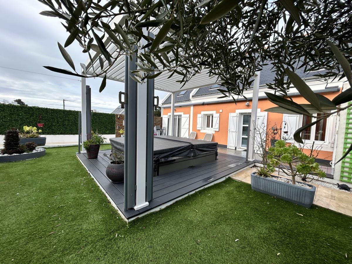 A l'étage, trois chambres et un bureau/dressing, salle de bains avec W.C. Terrasse, cuisine d'été, spa, dépendance en bois d'environ 26m² et remise en bois d'environ 44m², jardin. LE PALAIS