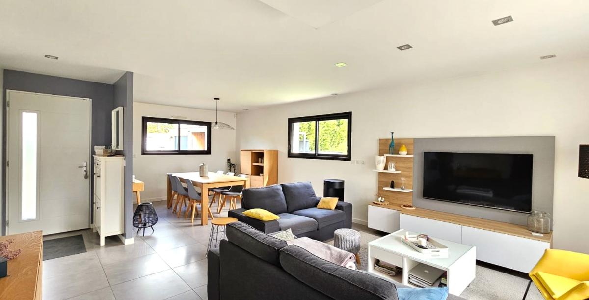 Au rez-de-chaussée :- Entrée avec placard et SAS - Salon salle à manger - Cuisine aménagée et équipée - Buanderie cellier - Chambre ou bureau (possibilité de faire une pièce d'eau). A l’étage : - Palier dégagement - Deux chambres - Suite parentale avec salle d’eau - Salle d’eau et - WC.