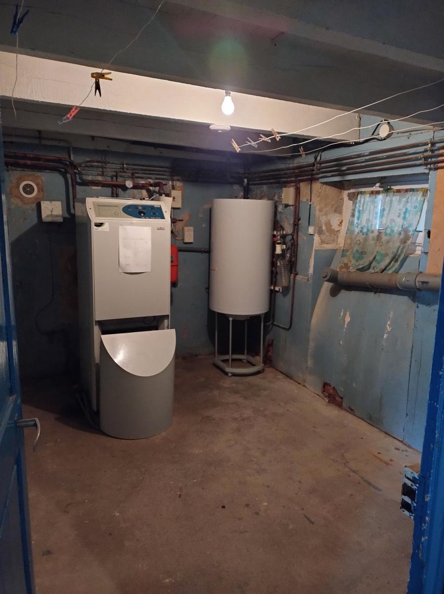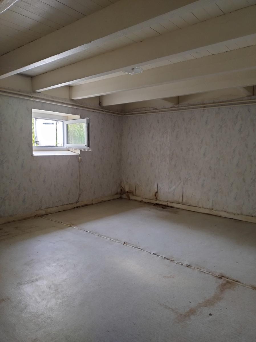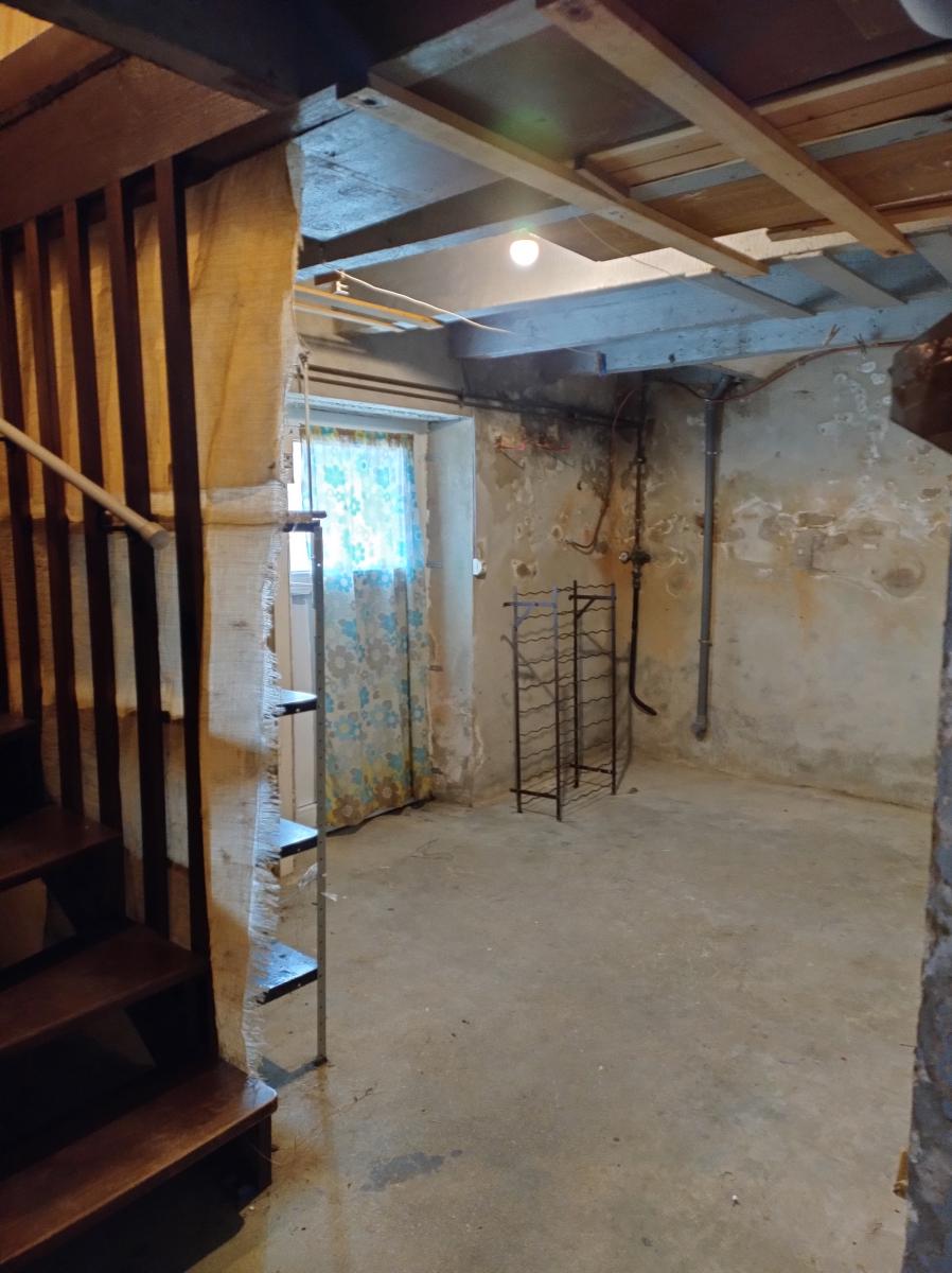 Cave de 50 m² : elle abrite l’espace technique (chaudière fioul), un espace rangement et deux pièces supplémentaires bénéficiant de la lumière naturelle grâce à leurs fenêtres.