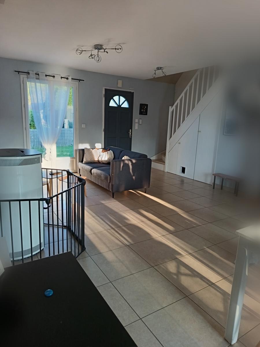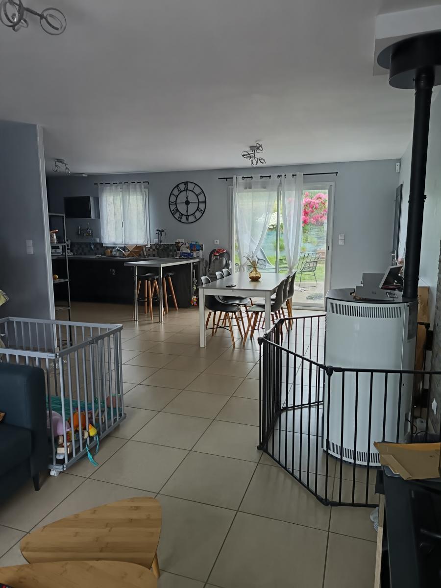 Au rez-de-chaussée : entrée sur séjour/salon avec poêle à granulés, ouvert sur la cuisine aménagée et équipée, couloir desservant deux chambres avec placard, salle de bains, wc ;