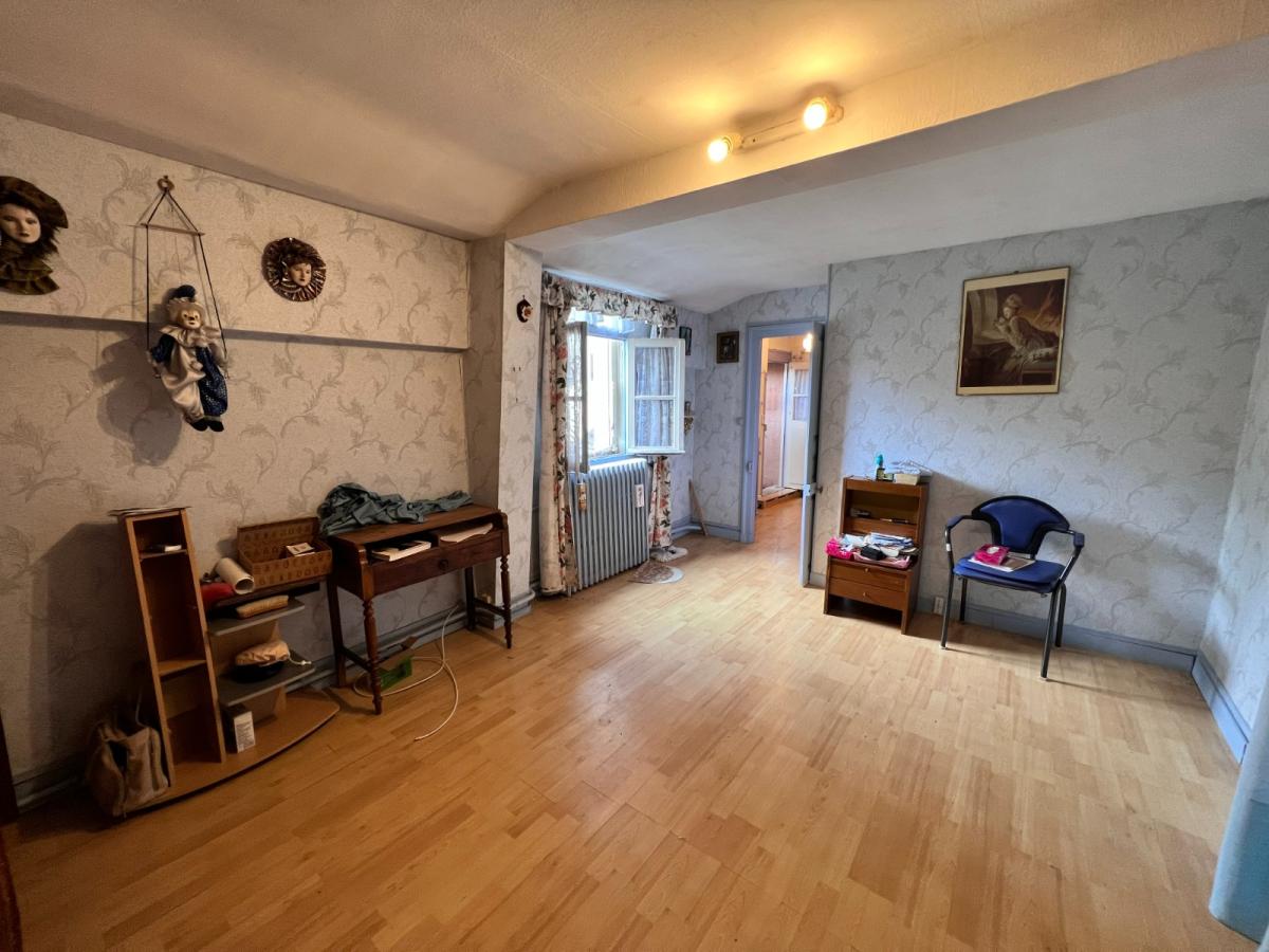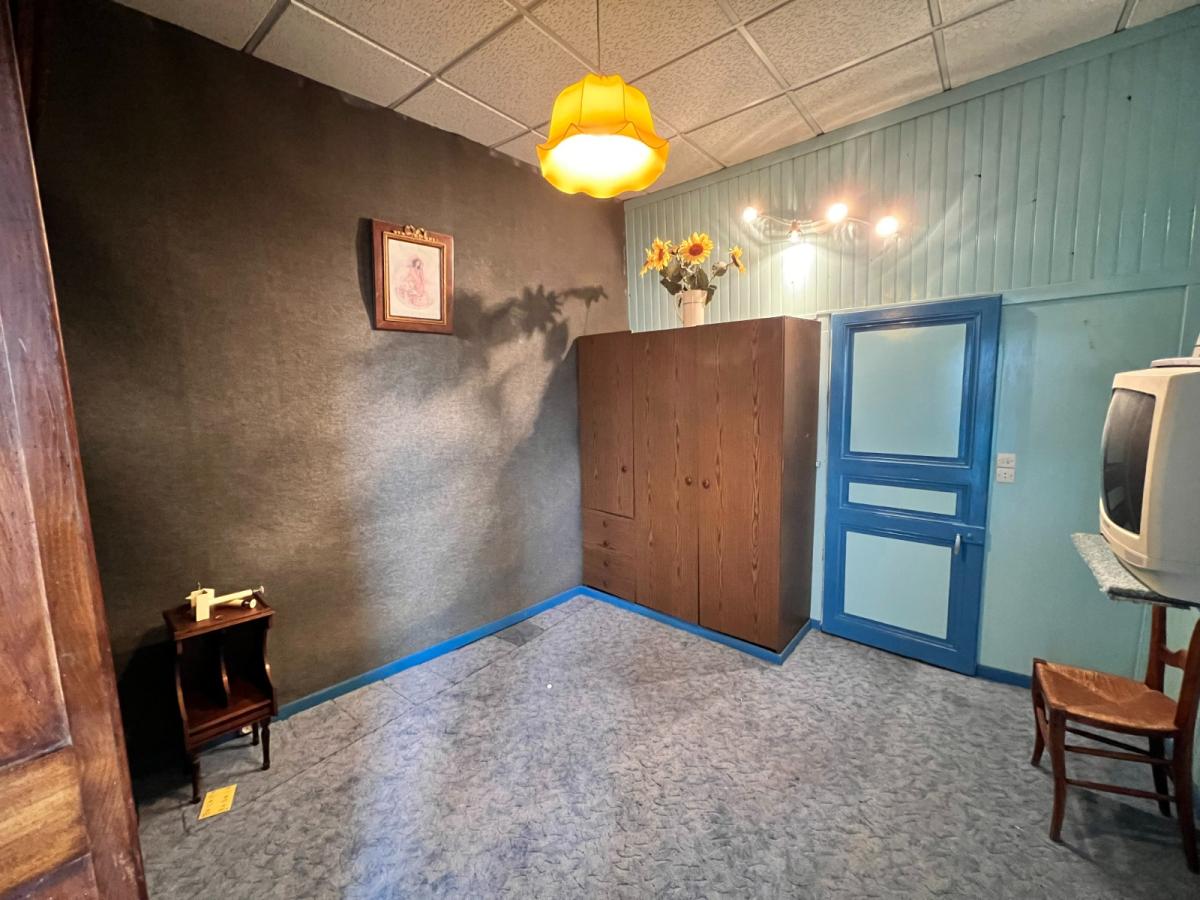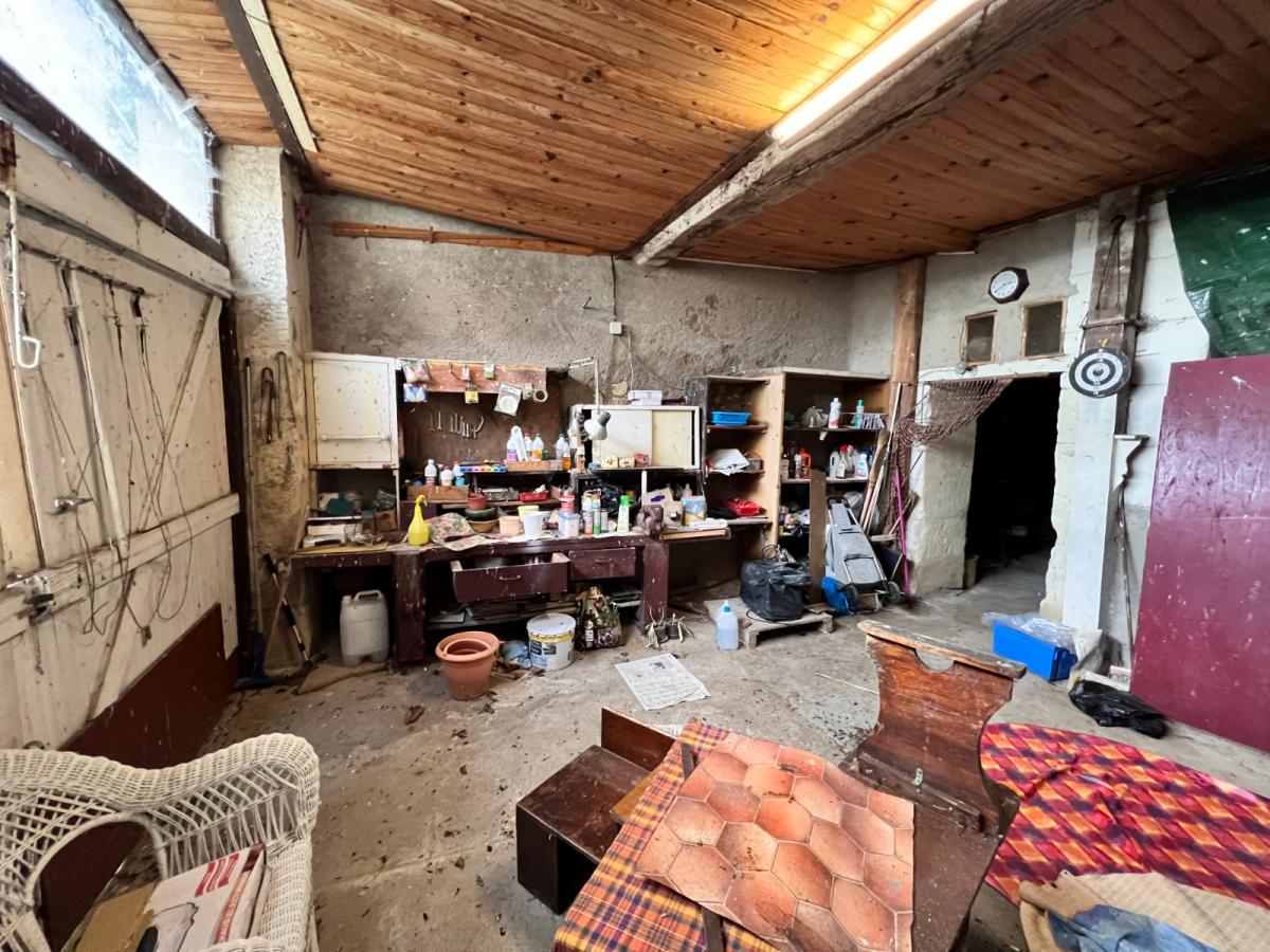 A l'étage : une chambre, une pièce et un grenier.