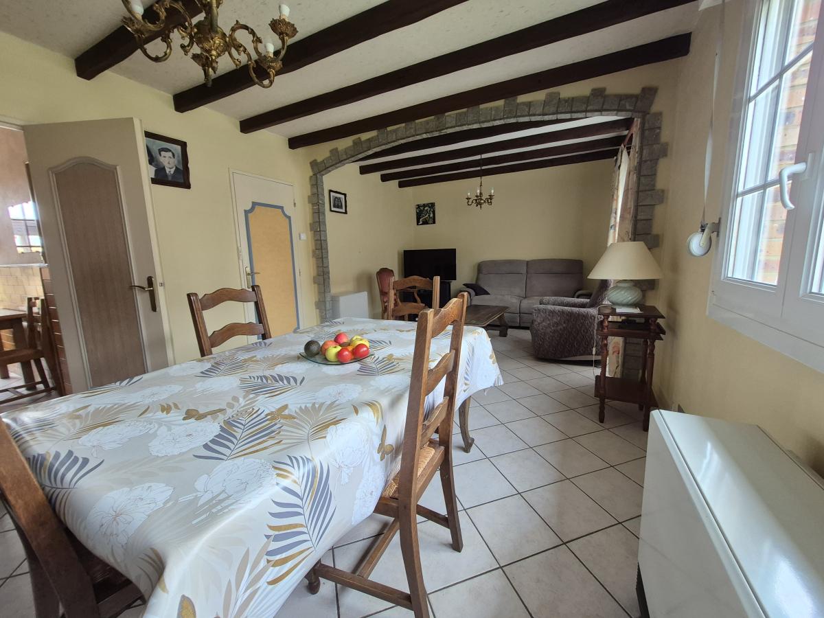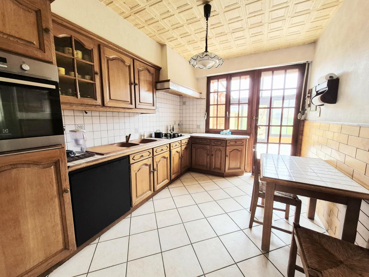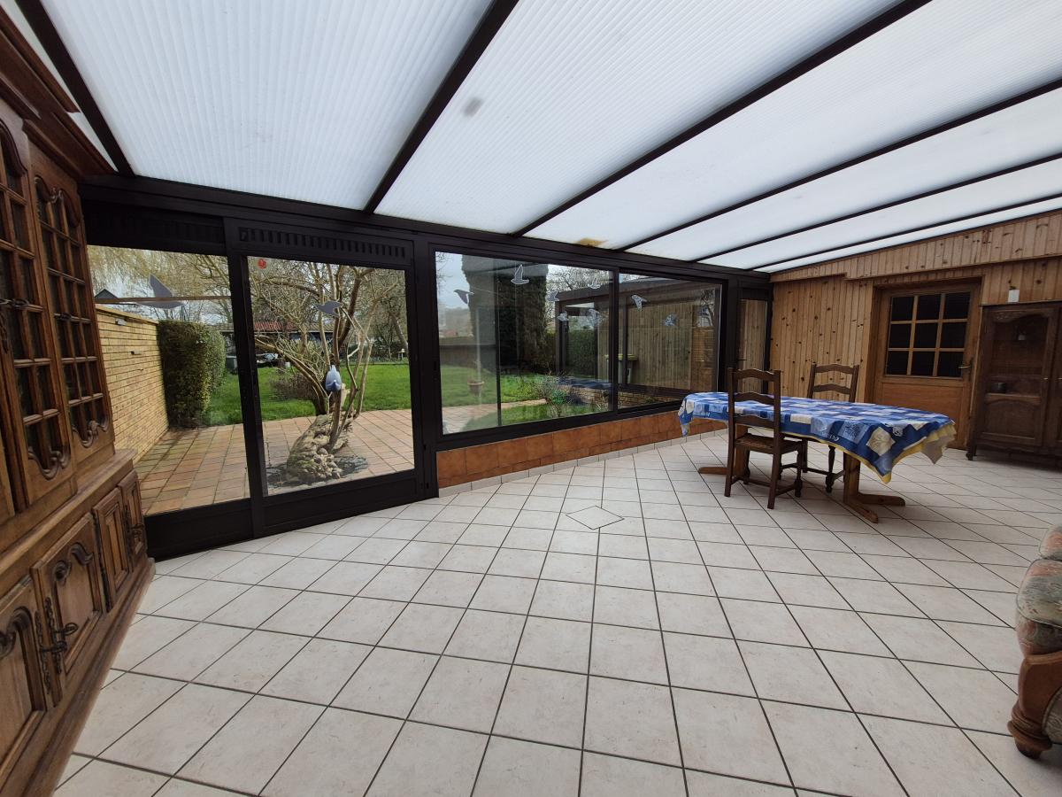 Maison semi-mitoyenne à Éperlecques bâtie sur environ 503m²de terrain, soignée et lumineuse, offrant de beaux volumes avec un séjour d’environ 30 m², une cuisine de 10 m² et une véranda de 31 m².