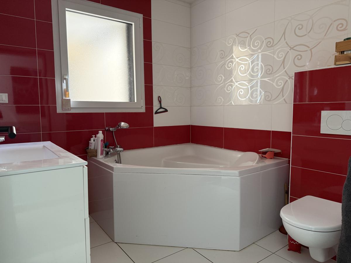- Entrée avec placards, cuisine aménagée et équipée ouverte sur pièce de vie, WC avec lave-mains, chambre avec placards et salle de douches privative, trois chambres avec placards, bureau, salle de bains avec WC, buanderie.
