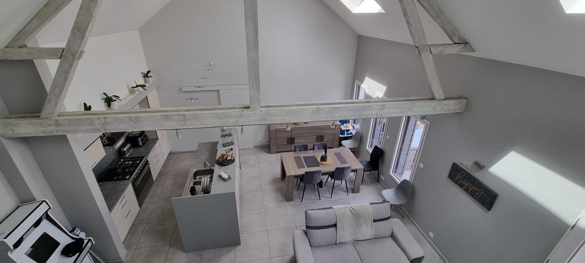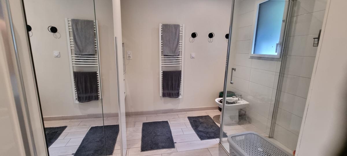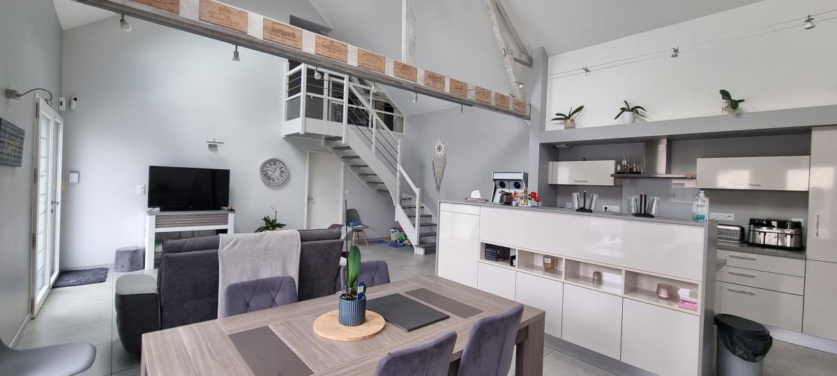 LA GUERCHE DE BGNE-Centre ville : Maison de 2016, SH : 127m², R.D.C., vaste séjour-salon-cuisine aménagée/équipée, sde, W.C., chambre, buanderie, garage, ETAGE, mezzanine, 2 chambres, sde-W.C., balcon, autre garage-stockage-cave, terrasse, cour, sur 300m² - Energ. B - prix : 240.000 € + négo : 9900 euros TTC (4,13%) - 06.23.25.52.39