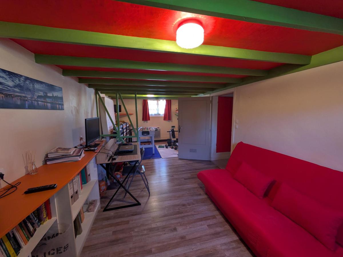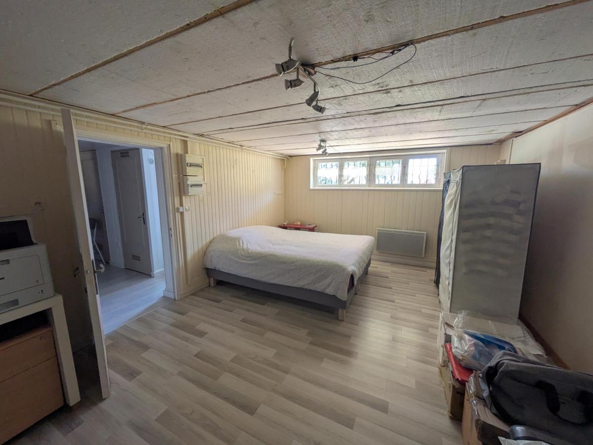 Proche centre commercial, pavillon sur sous sol total surélevé en parfait état général, comprenant hall d'entrée, séjour traversant, cuisine indépendante entièrement aménagée et équipée, salle d'eau avec wc, deux chambres. Autre chambre, bureau, buanderie, wc et cave en sous sol.