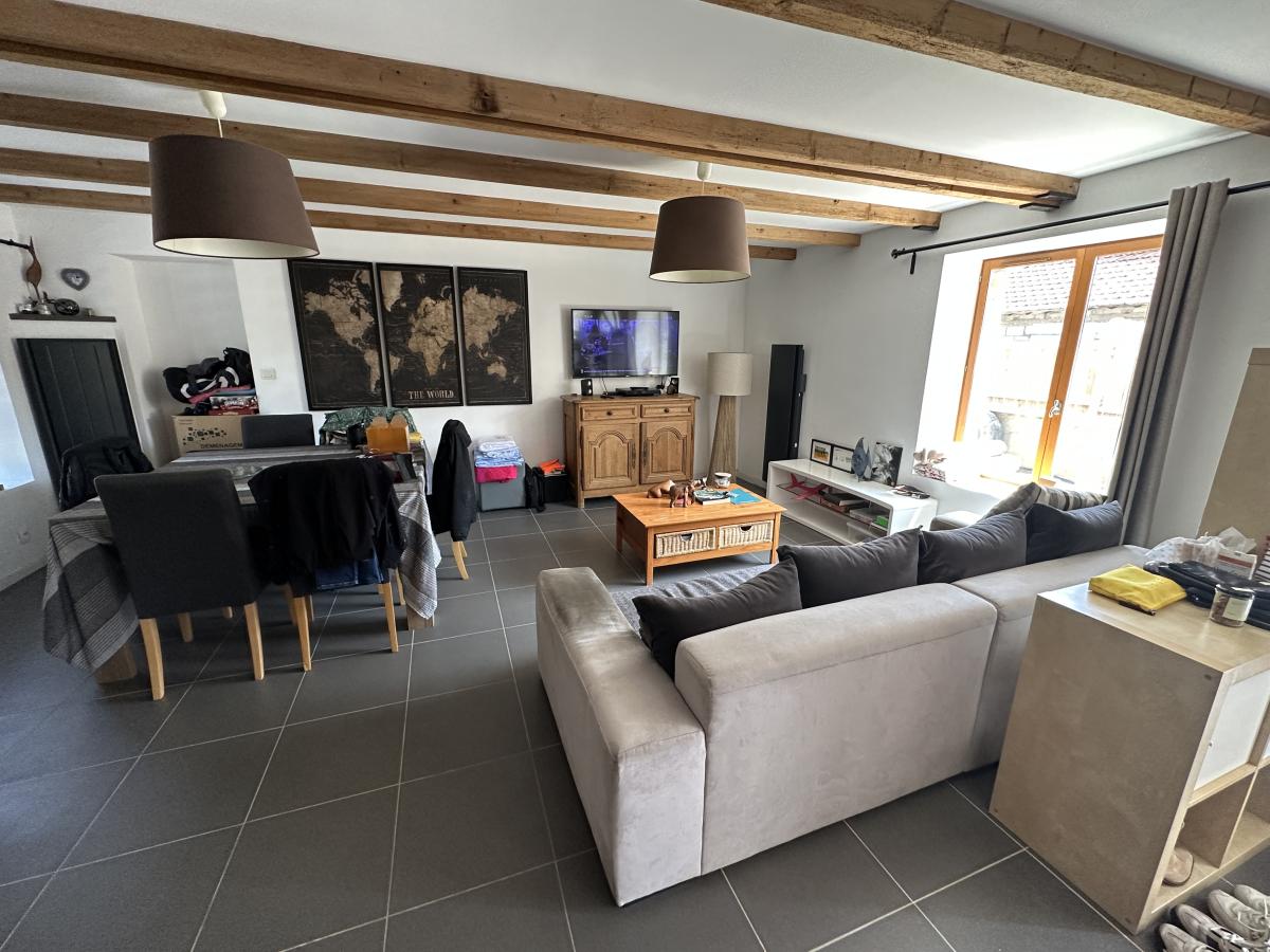 SAINT JOUAN Centre - A moins d'un km de la plage du Vallion - Longère (128.87m²) entièrement rénovée comprenant une entrée dans la pièce principale avec cuisine équipée ouverte, salon et salle à manger, un wc et une salle d'eau. A l'étage, le palier avec placards dessert 3 chambres. Un studio indépendant de 19.78m² idéal pour un rapport locatif ou pour créer une chambre en rez-de-chaussée. Terrasse Sud sans vis à vis. Une place de stationnement privative.