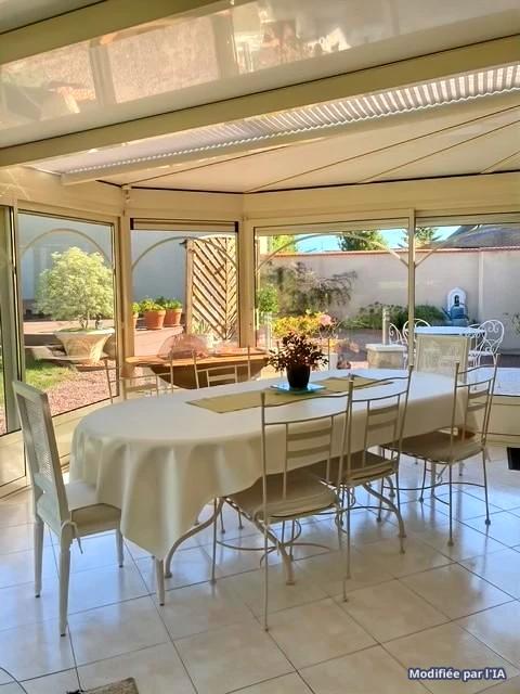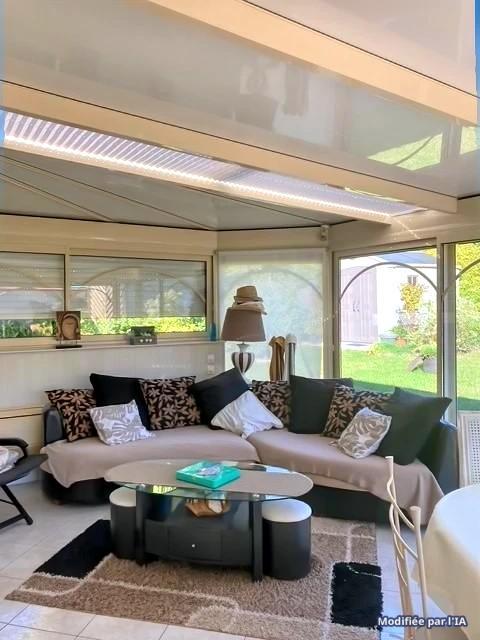 Espace Vie : Salon-séjour spacieux, cuisine aménagée et magnifique véranda climatisée de 30 m² avec volets électriques.