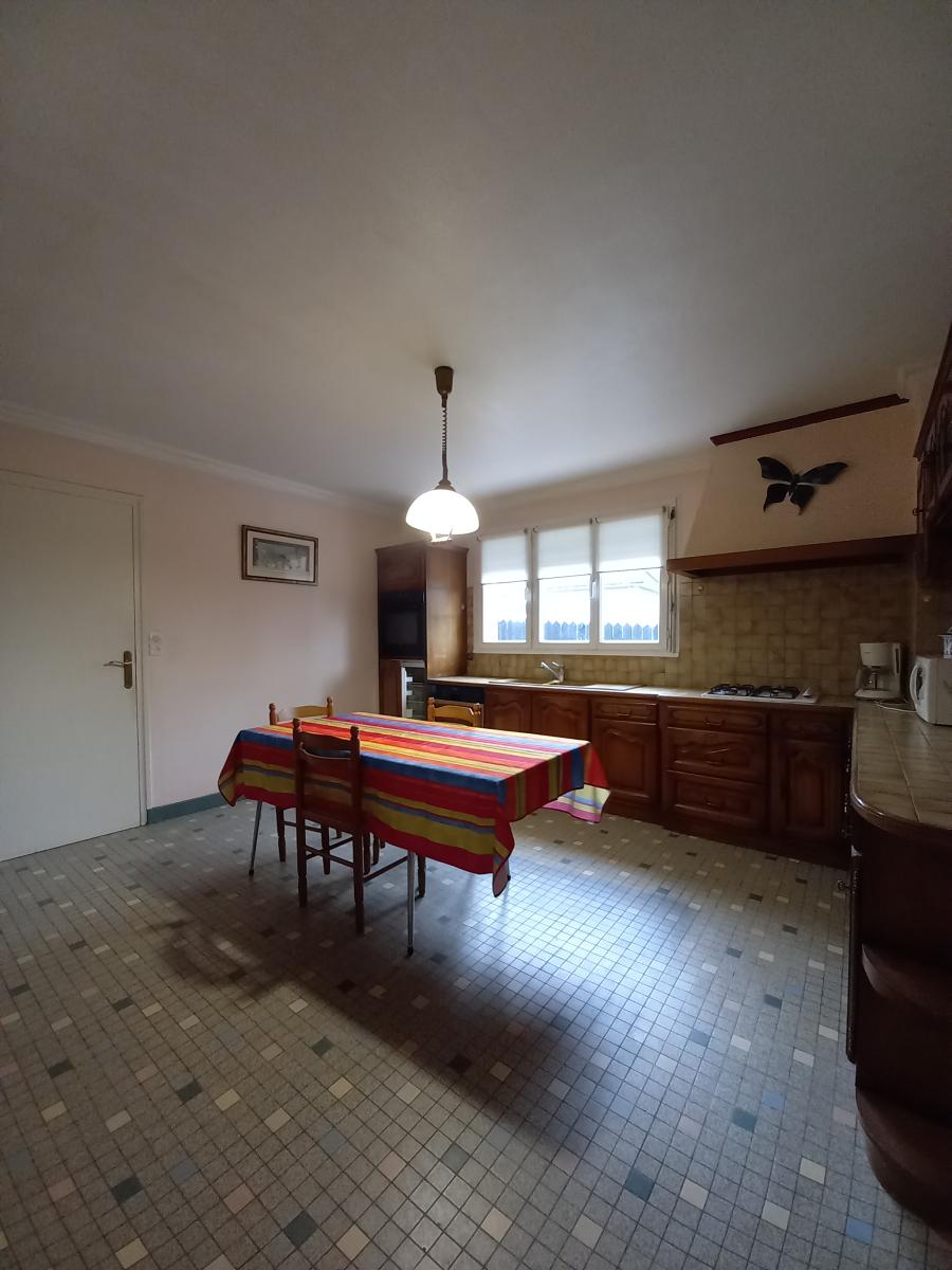 Ses 130 m² se compose d'une grande cuisine, salon-séjour avec cheminée, deux chambres, buanderie et sanitaire au rez-de-chausée
