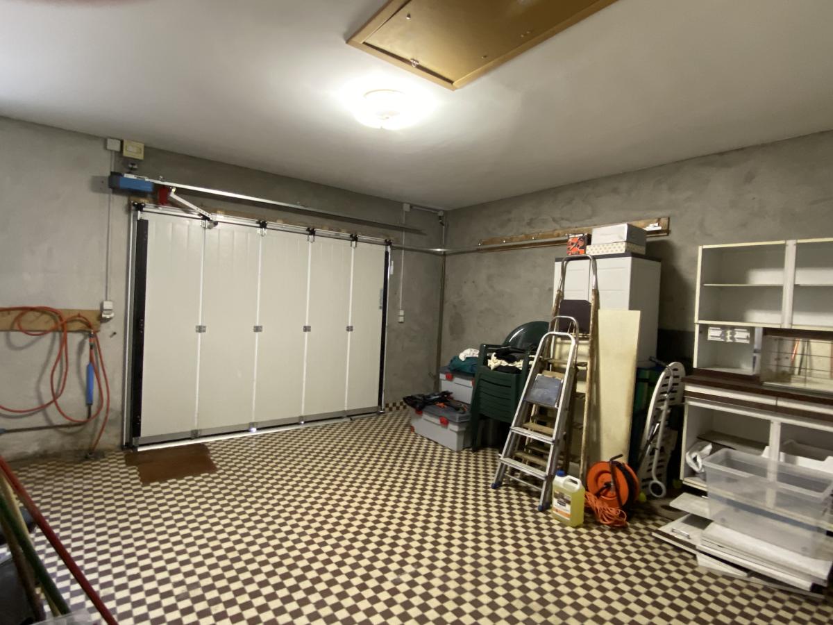 En annexes, un garage carrelé attenant de 26m² avec portail motorisé et espace de stockage .