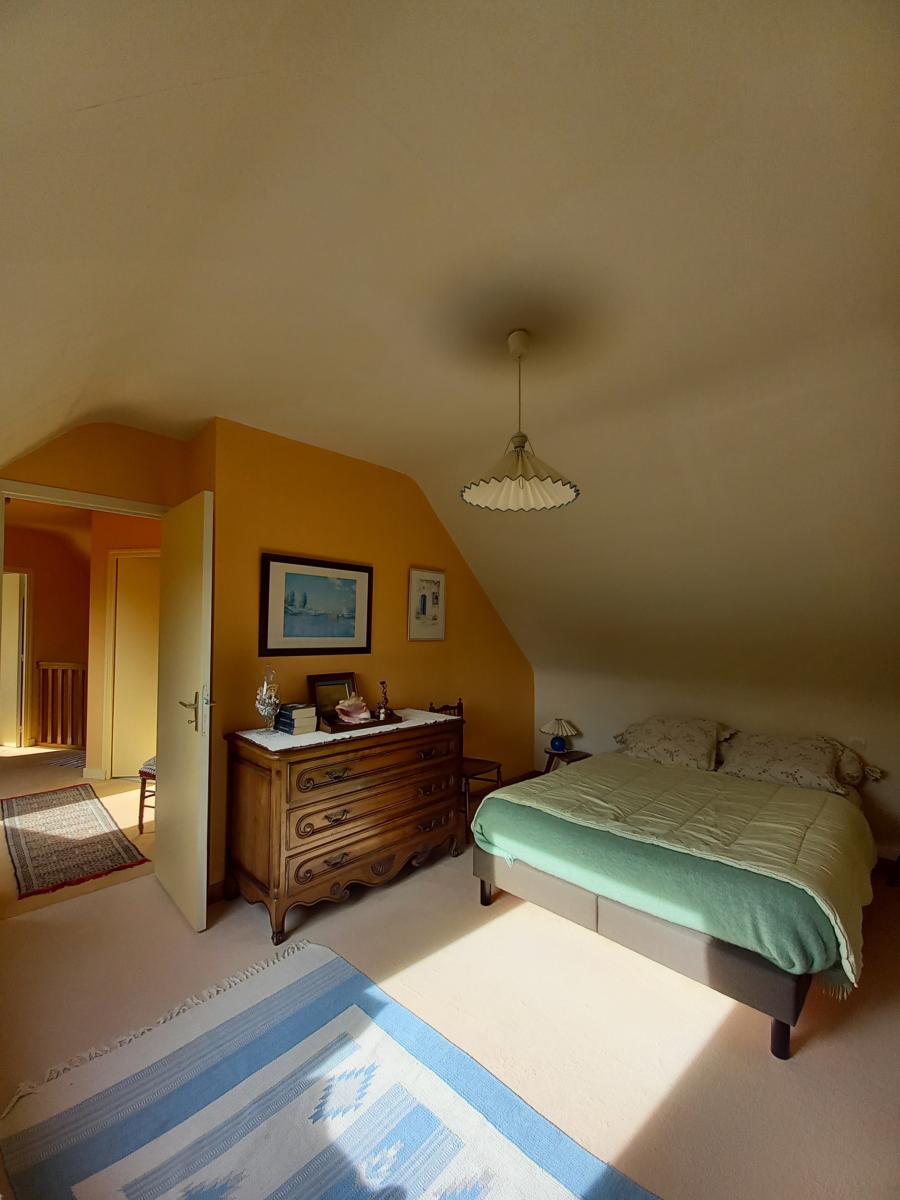 Le rez-de-chaussée propose une belle pièce de vie lumineuse de plus de 50m² avec cuisine équipée et aménagée ouverte, un cellier, ainsi que deux chambres et une salle d’eau. À l’étage, une vaste mezzanine dessert deux chambres spacieuses dont l'une avec dressing et une salle de bains.