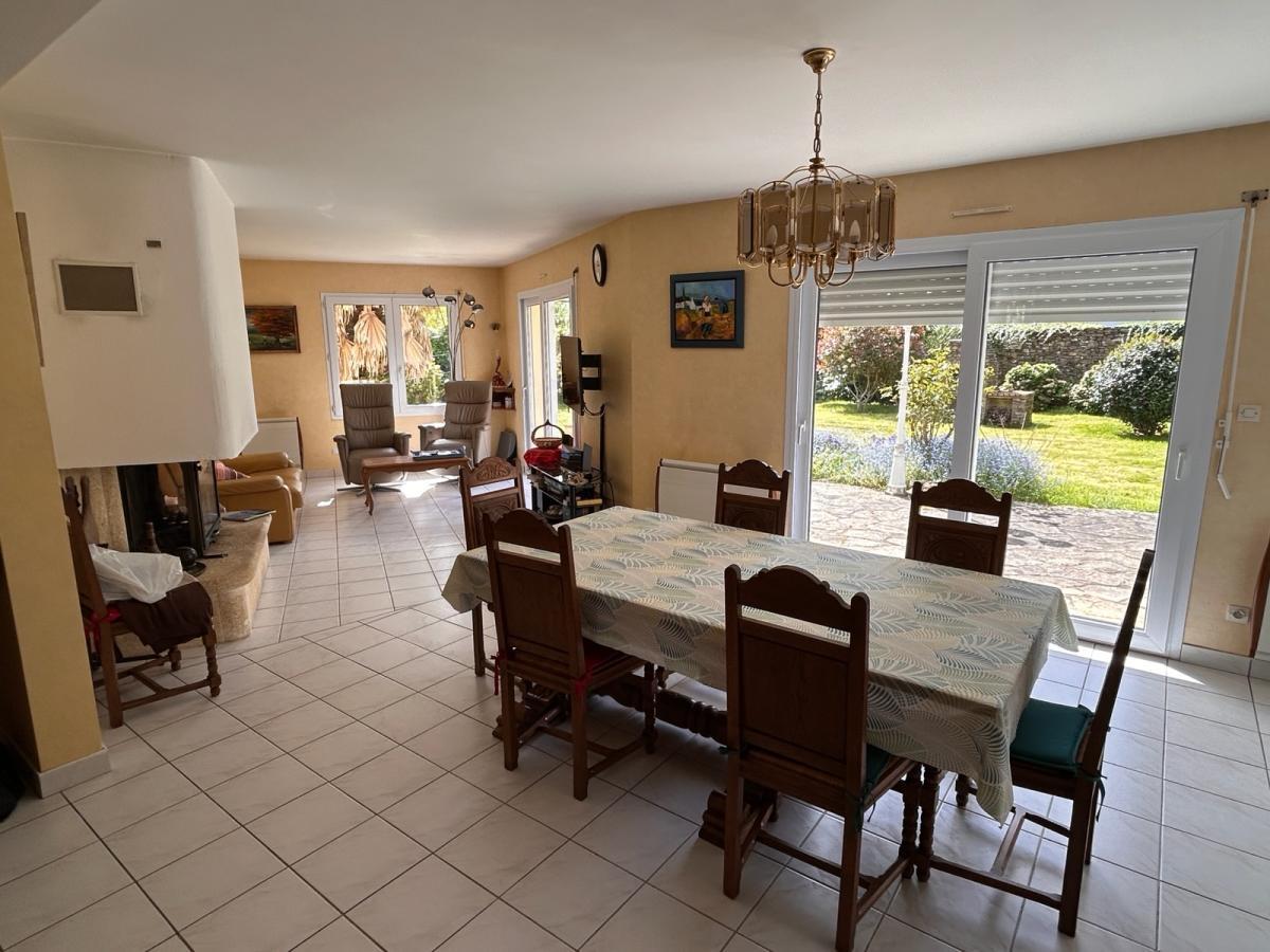 Située au cœur du bourg, cette maison familiale d’environ 130 m² habitables, parfaitement entretenue, est implantée sur un terrain constructible d’environ 1 600 m², paysagé et arboré, offrant un cadre de vie agréable et préservé.