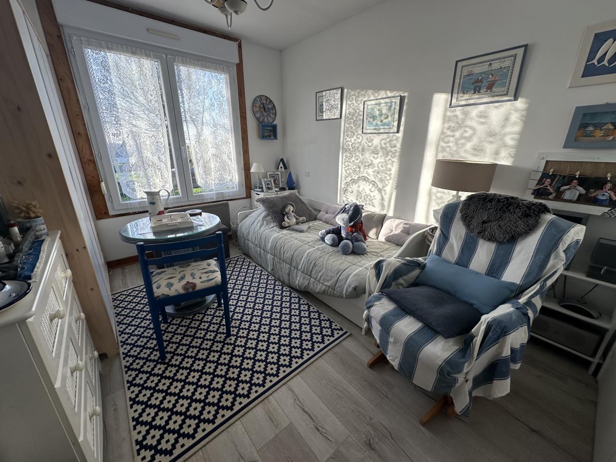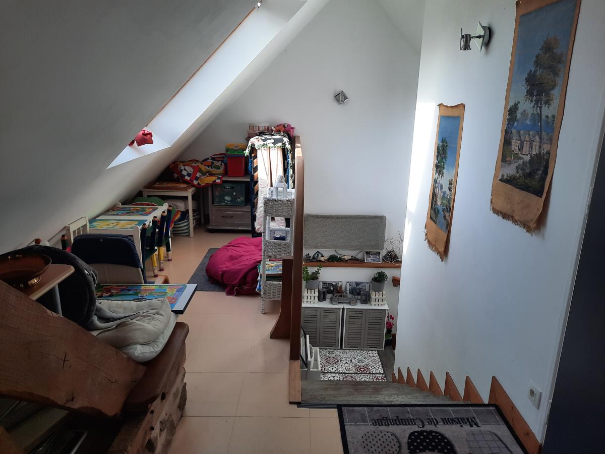 . à l'étage : salon avec kitchenette équipée (possibilité chambre), salle d'eau, WC, 1 chambre avec placard,