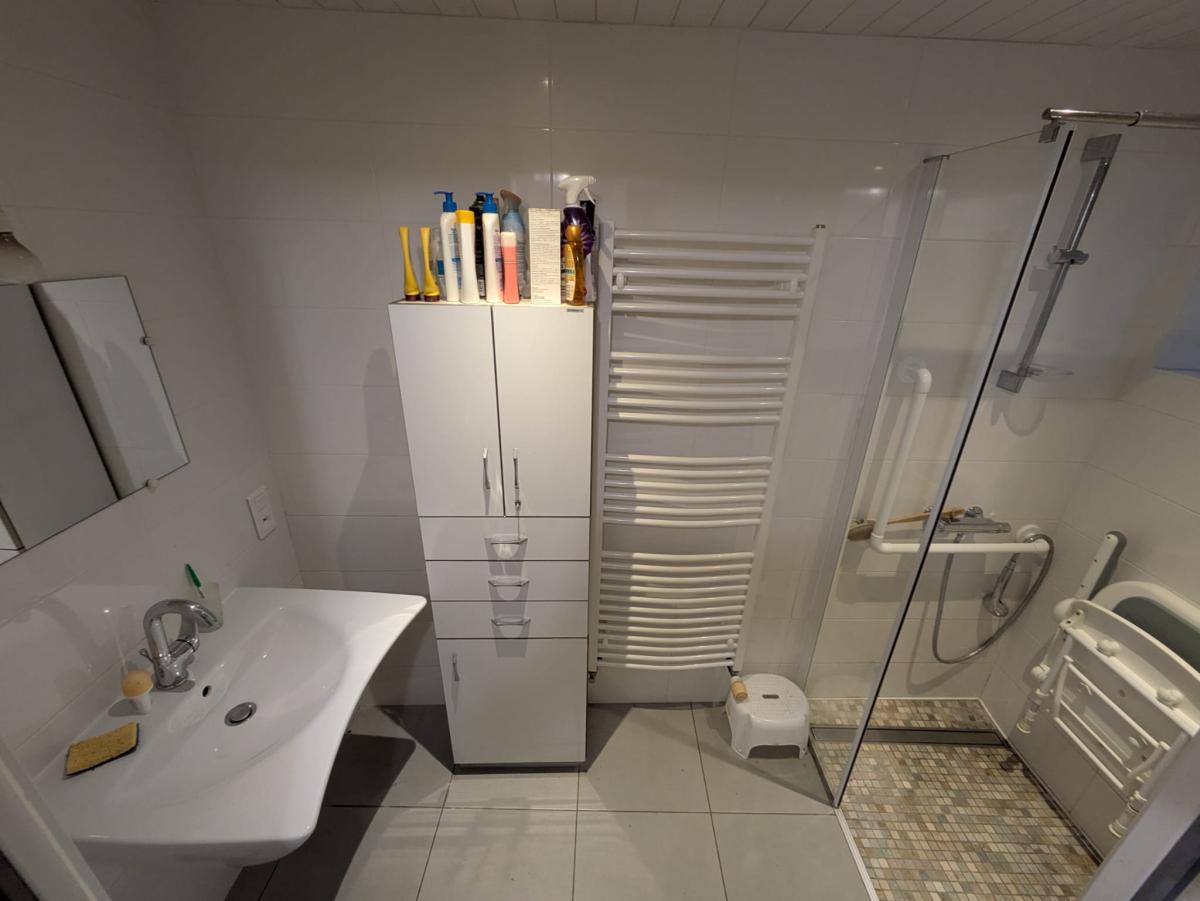 - Au rez-de-chaussée : cuisine, salon-séjour avec cheminée à insert, dégagement, salle de douches, WC, dégagement, WC avec lave-mains, buanderie, chaufferie.