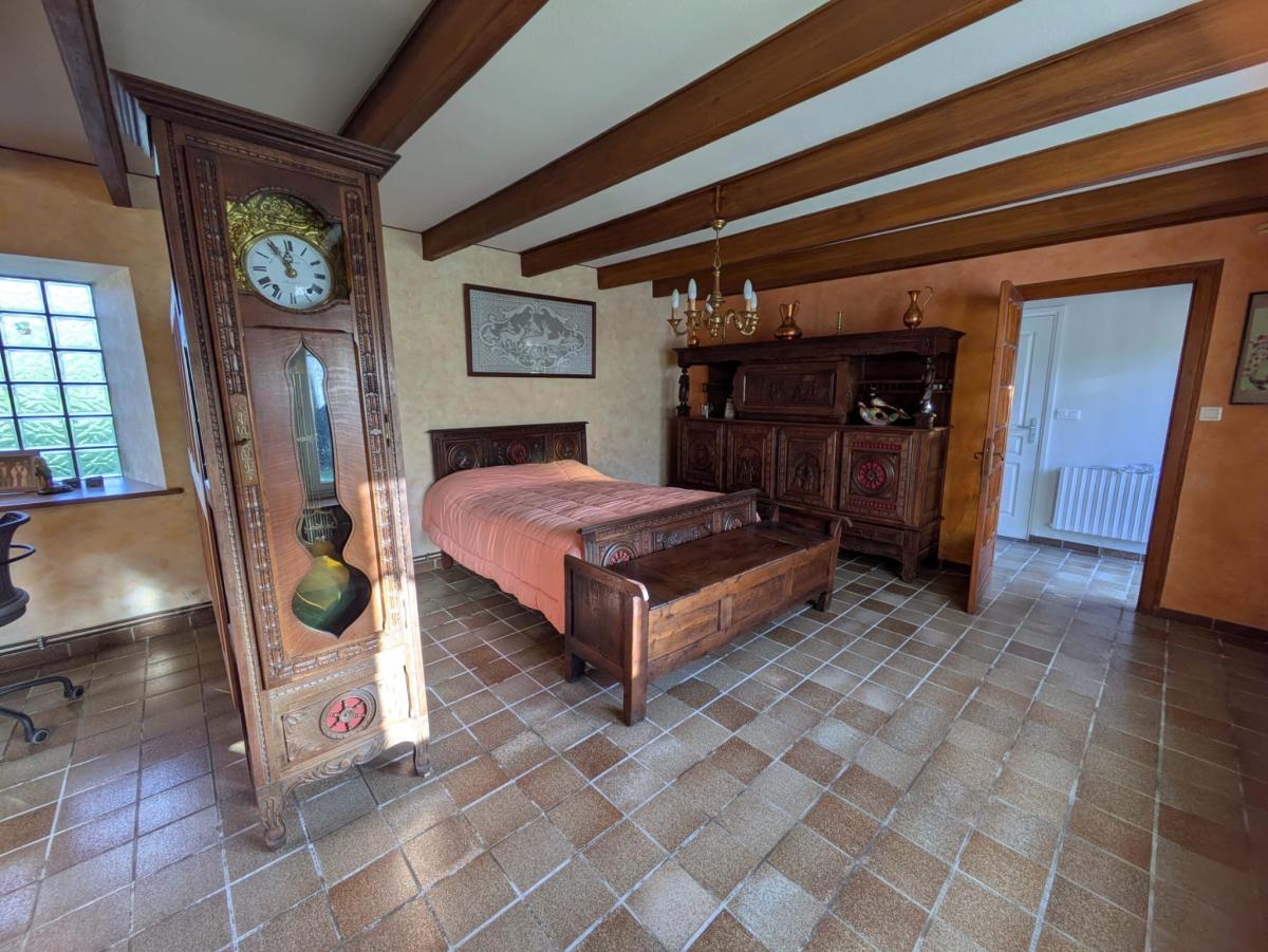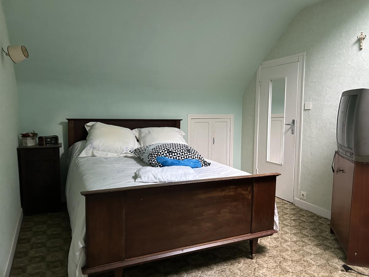 - À l'étage : couloir avec placards desservant deux chambres, une chambre en enfilade, chambre avec placards bureau, cabinet de toilettes.