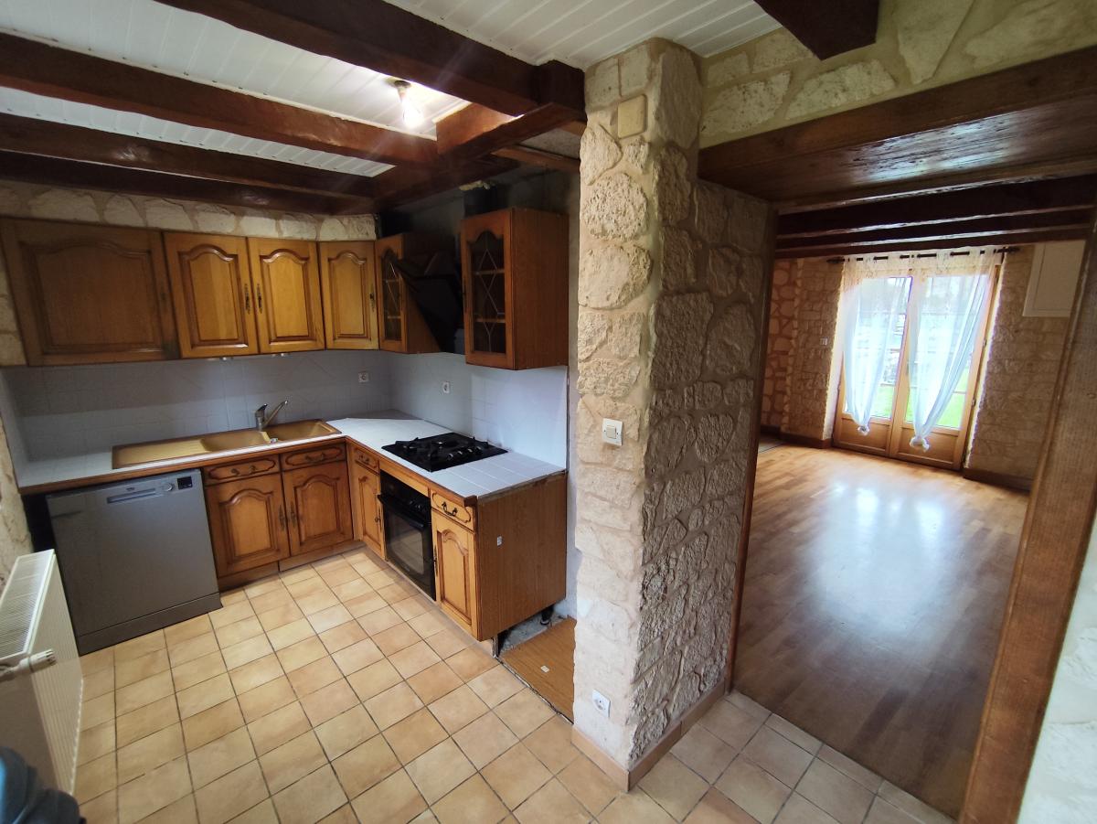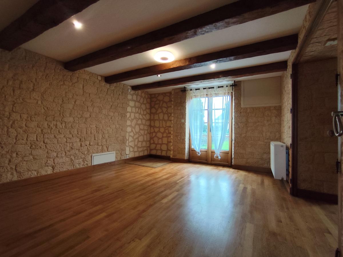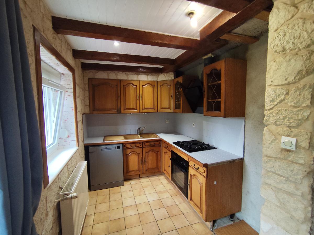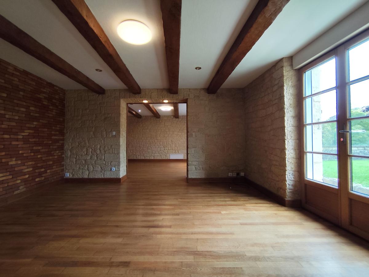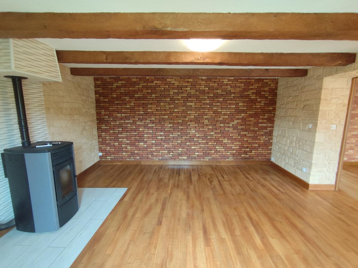 Au rez-de-chaussée : pièce à vivre de 38m² avec poêle à granulé, cuisine équipée.