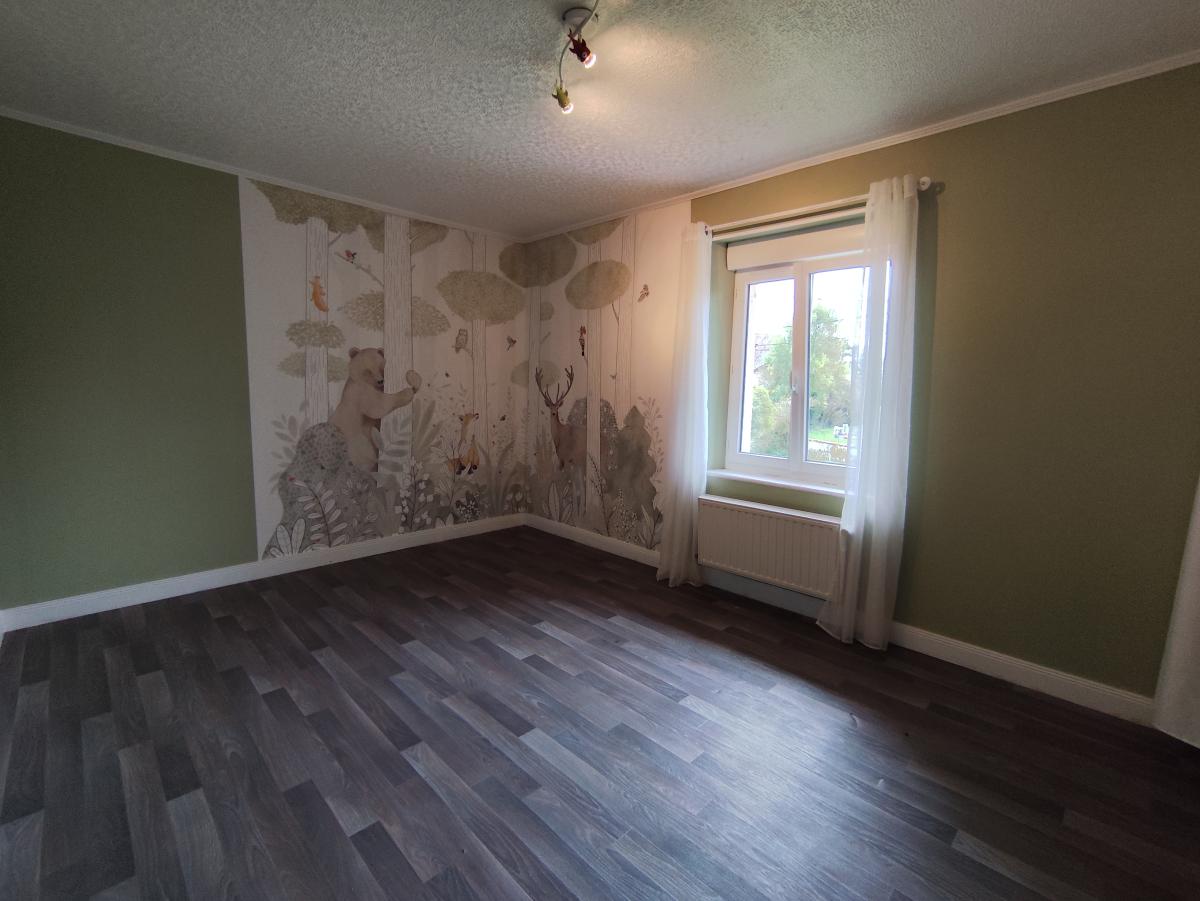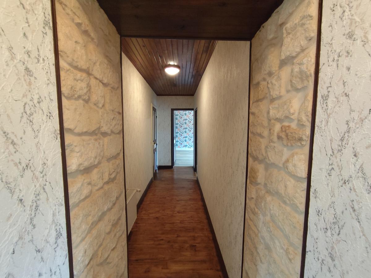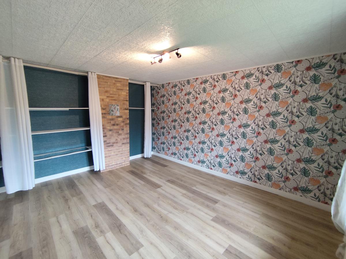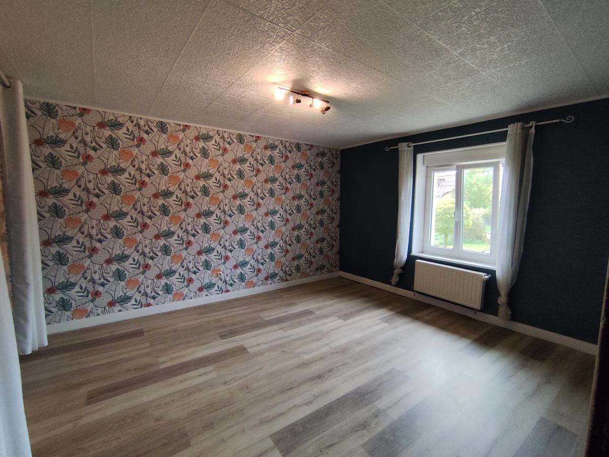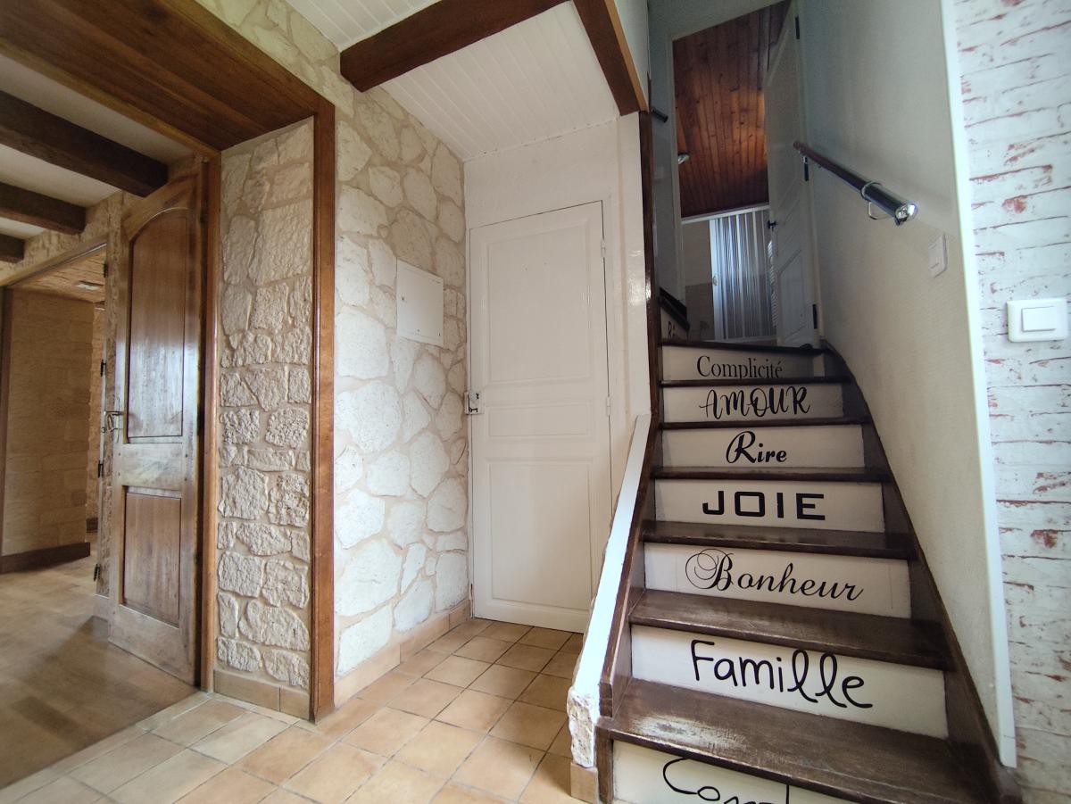 Au rez-de-chaussée : pièce à vivre de 38m² avec poêle à granulé, cuisine équipée.