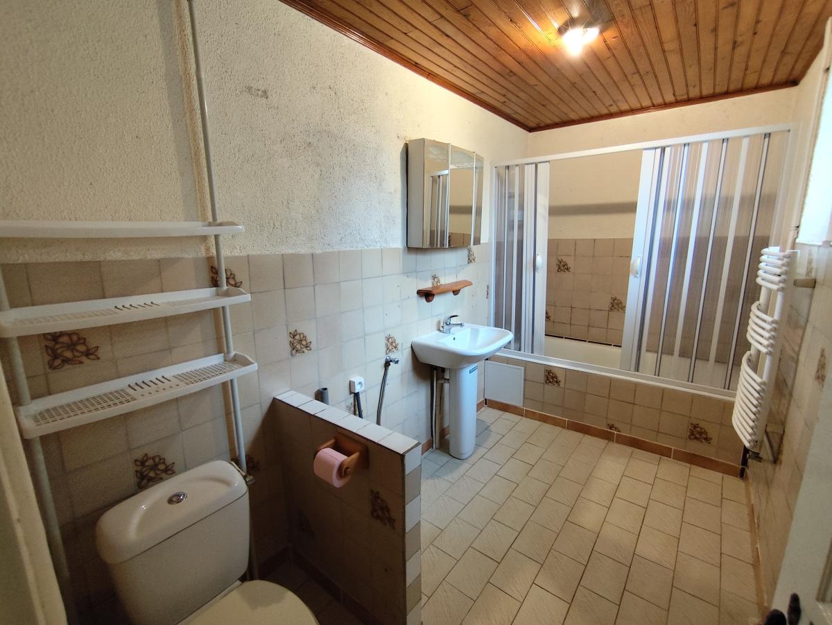 Au demi étage : une salle de bain avec WC.